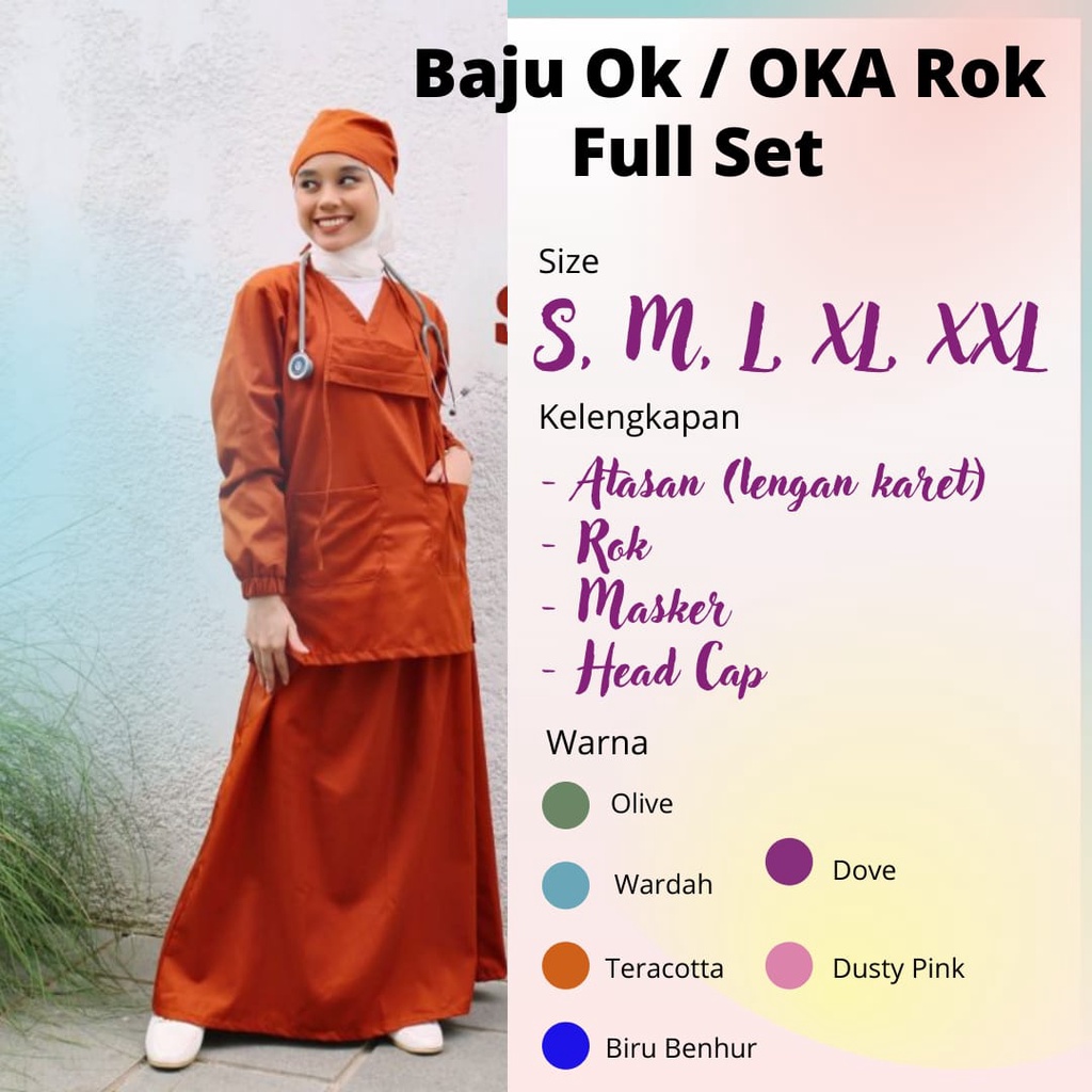 Baju Ok Oka Rok Full Set | Medical Scrub APD Perawat Dokter Petugas Medis