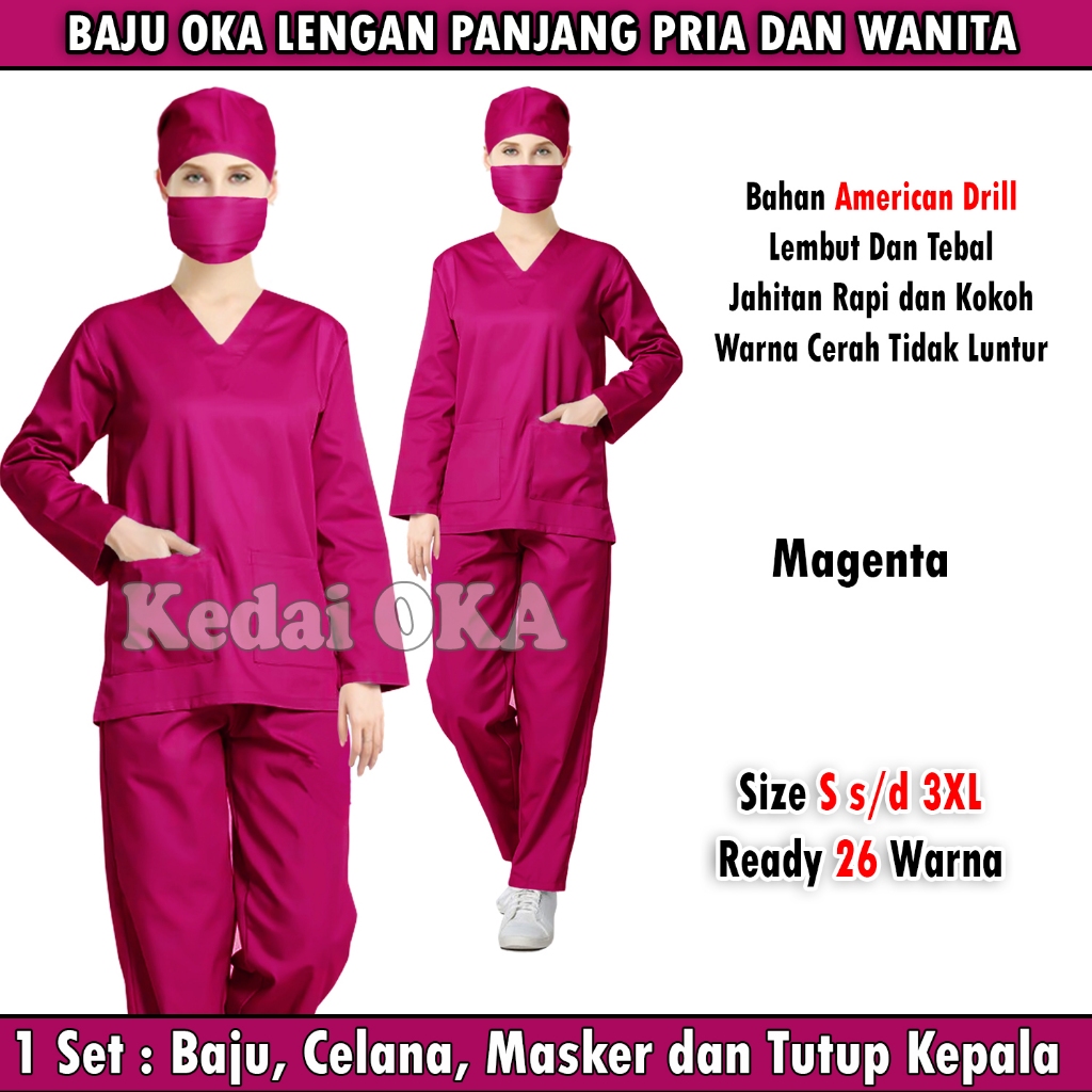 Baju Oka Lengan Panjang - Baju Ok Perawat Medis - Scrub Oka dokter - Baju Jaga Perawat - Baju Bidan