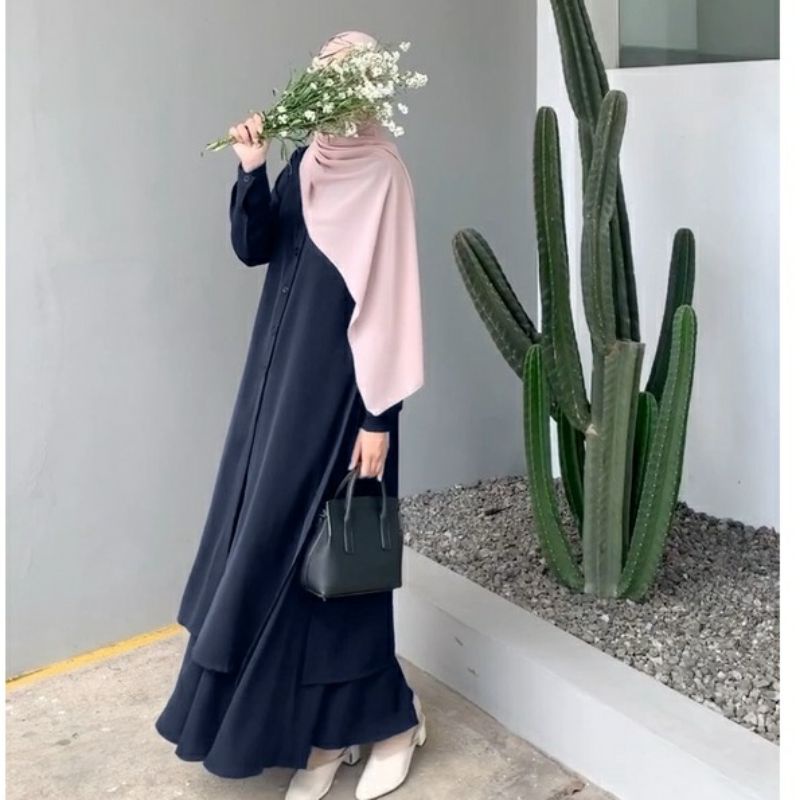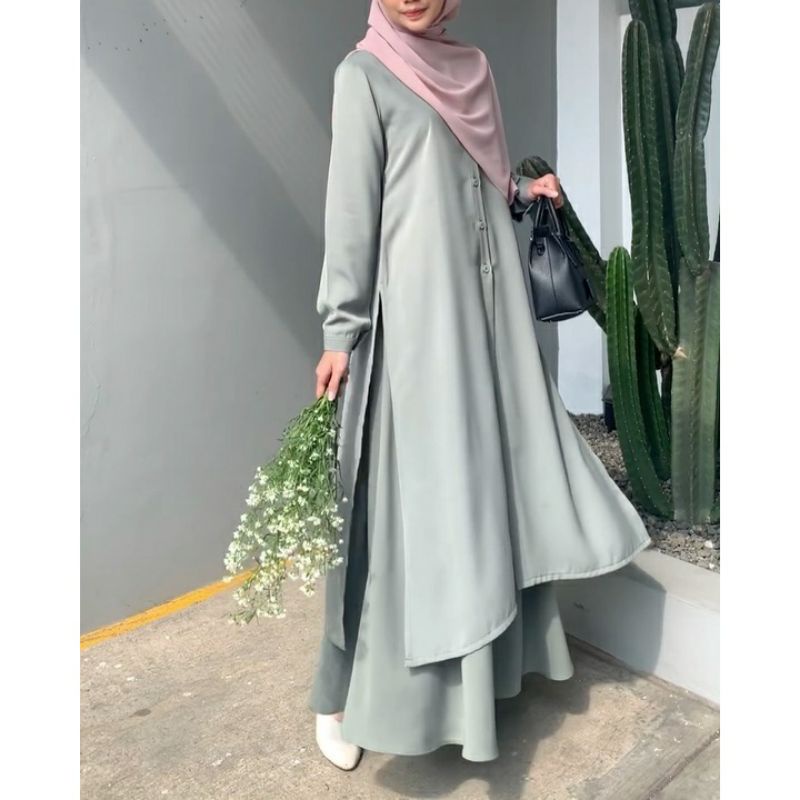 Baju One Set Tunik + Rok Jumbo | Setelan Malaysia Long Tunik Syar'i | Setelan Long Tunik Rok Wanita Muslim OOTD Terbaru
