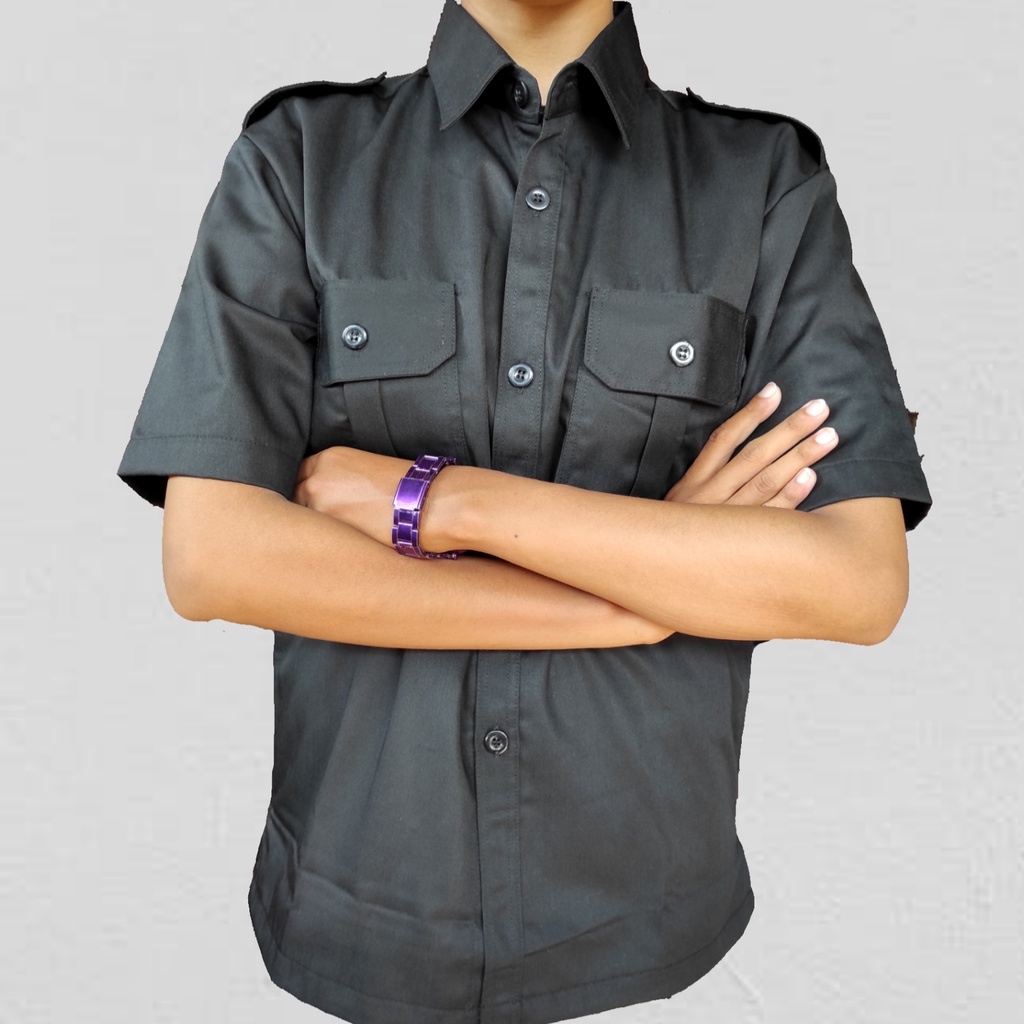 Baju PDH Hitam Lengan Pendek mattt japan drill tebal elegan