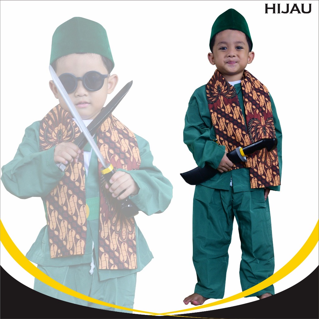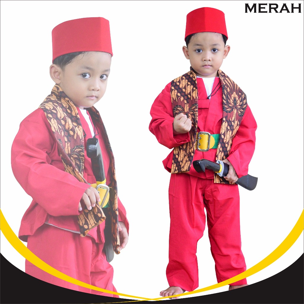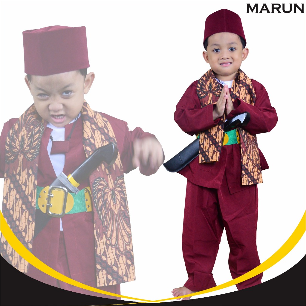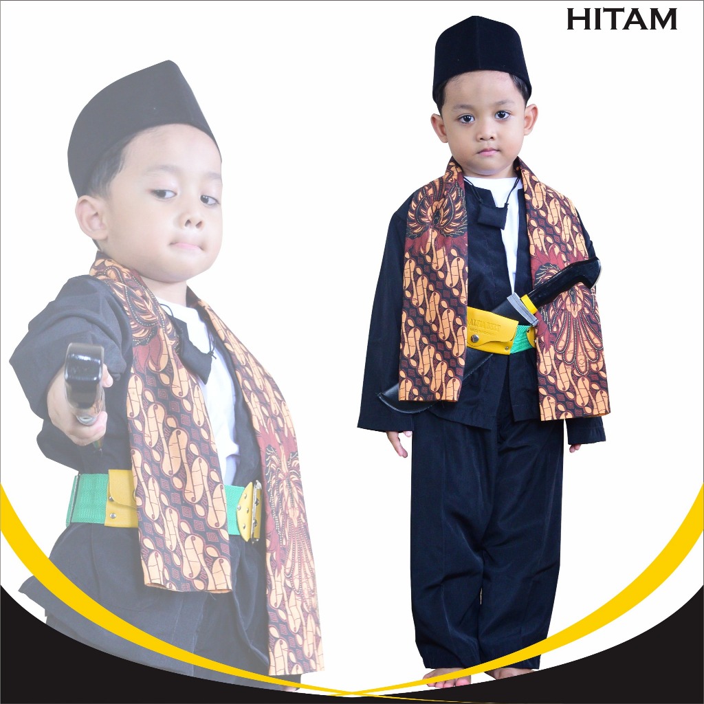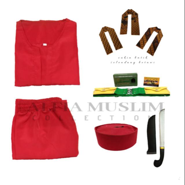 Baju Pangsi Betawi Paling Lengkap ( Baju pangsi+sabuk+selendang+golok-golokan )