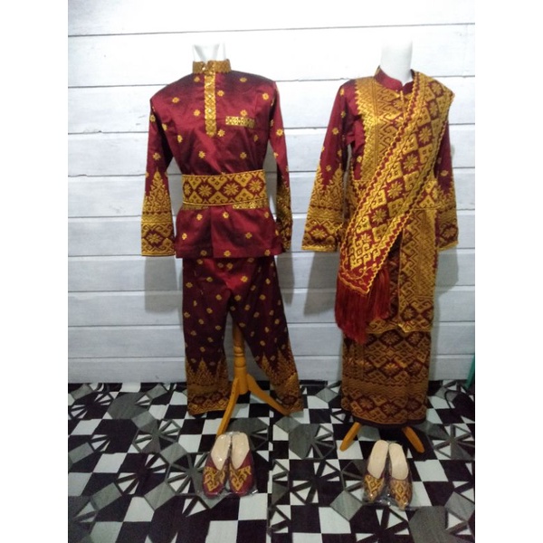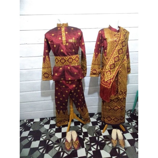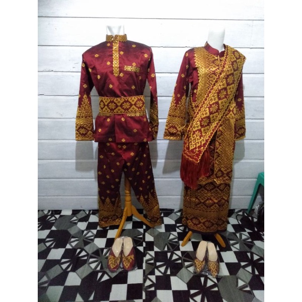 Baju Pengantin Tenun Songket Tradisional Melayu Riau Motif Pucuk Rebung