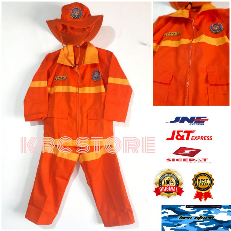 Baju Profesi Anak Damkar Anak / Seragam Pemadam Kebakaran Anak / KOSTUM ANAK DAMKAR CILIK / BAJU KARNAVAL DAMKAR ORANGE CILIK