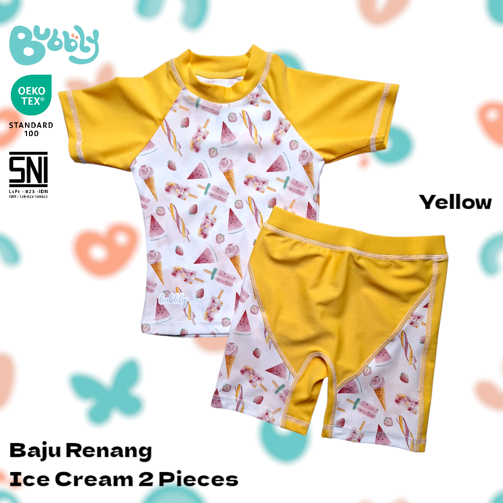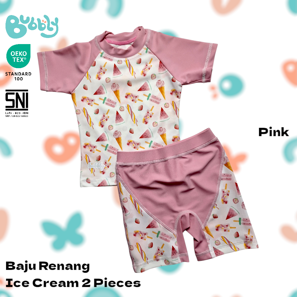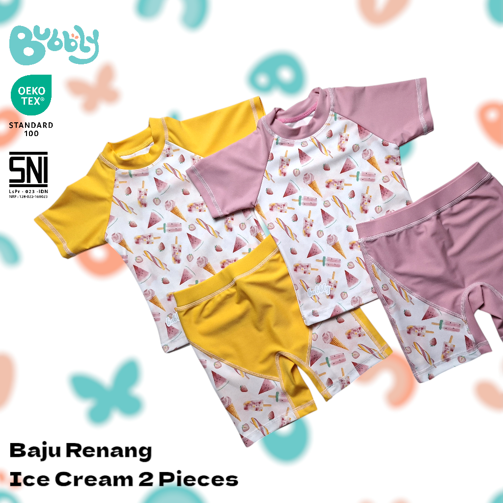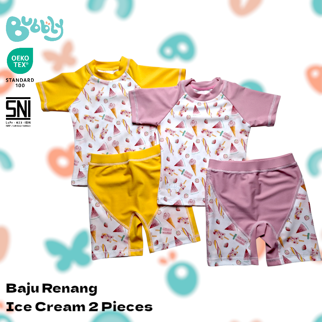 Baju Renang Anak Lengan Pendek Bubbly Ice Cream 2 Pieces - Swimwear Anak lengan Pendek - Set Baju Renang Anak Diving