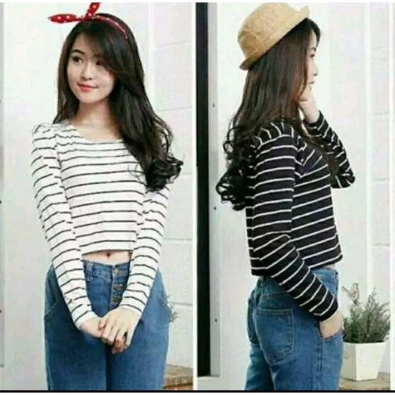 Baju Salur Lengan Pajang / Kaos Salur Crop / Kaos Salur Hitam-Putih