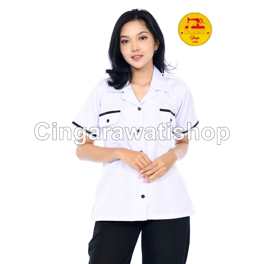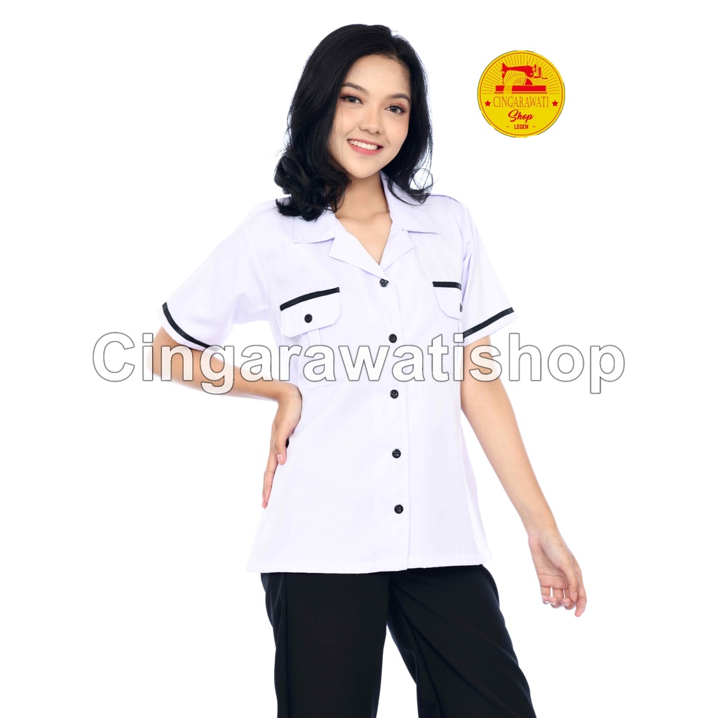 Baju Seragam Dinas Putih PNS Wanita Lengan Pendek Baju Dinas Putih List Hitam Kemeja Putih Wanita Baju Putih Dinas Wanita Baju Seragam kerja wanita Baju Pdh Putih Wanita