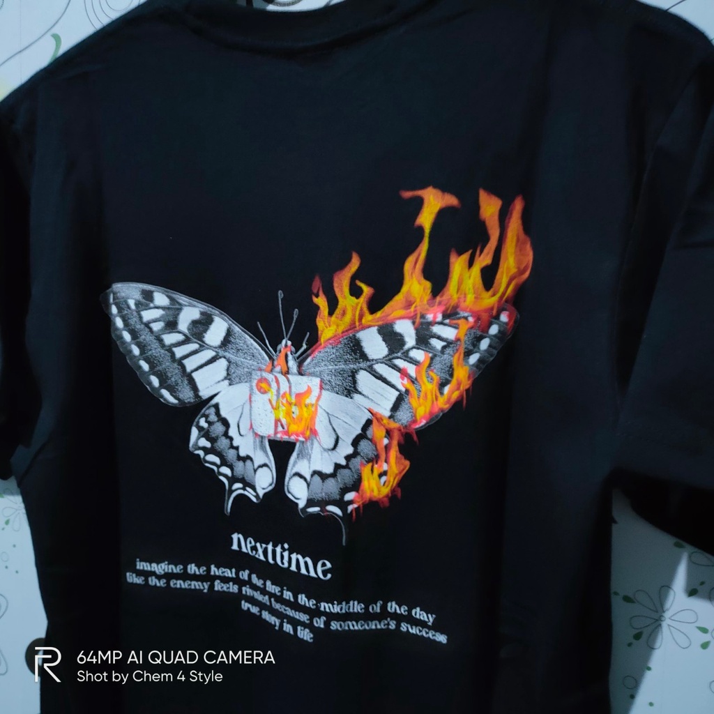 Baju T-Shrit SEVEN KEY X NEXTIME BUTRFLY BURNING Lengan Pendek Pria dan Wanita Combad30s ORIGINAL