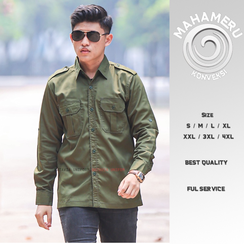 Baju Tactical Pria Lengan Panjang - Kemeja Taktikal Seragam Kerja Dinas Lapangan PDL PDH Putih Bahan American Drill Bisa Custom Model, Design dan Bordir