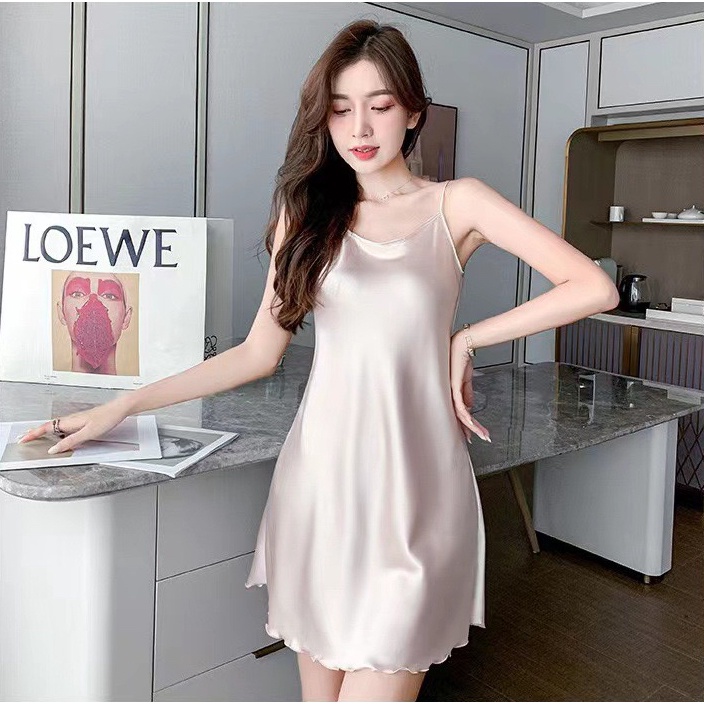 Baju Tidur Daster Wanita Dress Tidur Dress Rumah Dress Satin Silk Premium Sleepwear Santai Hot 7001
