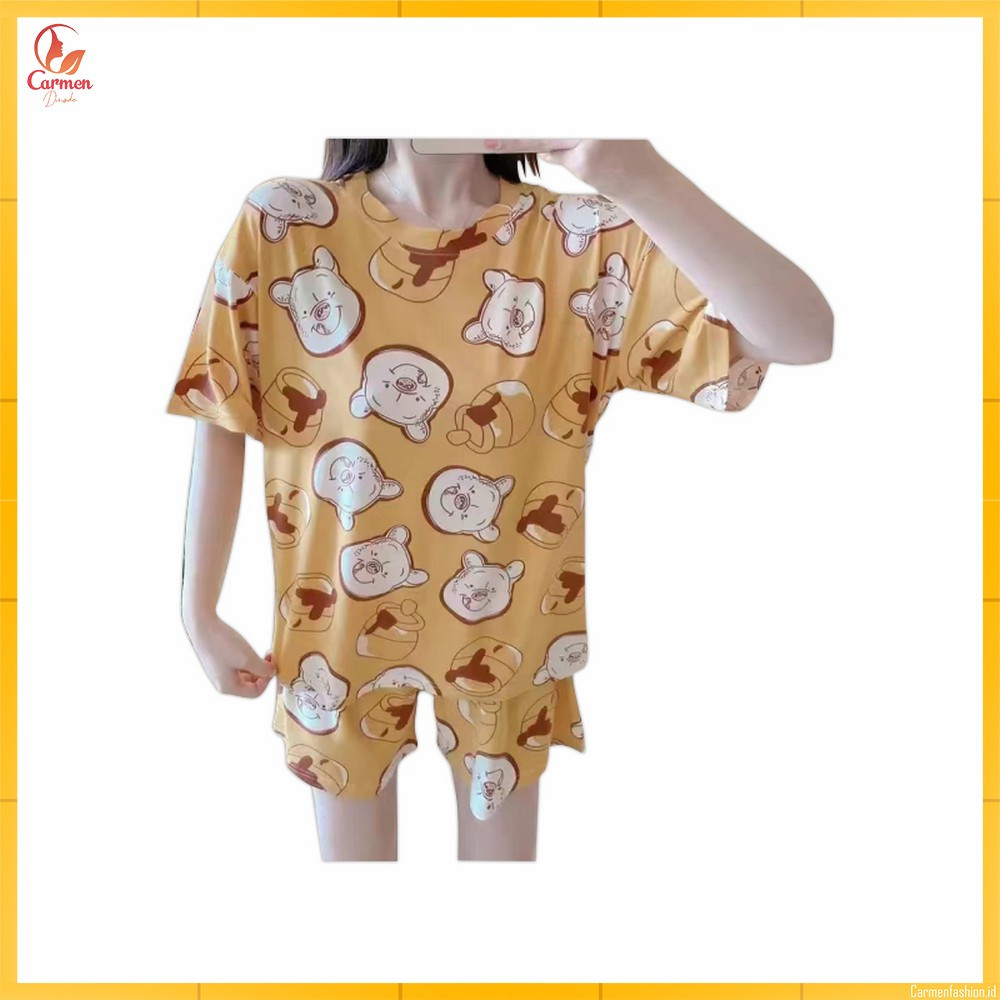 Baju Tidur Lengan Pendek Set Karakter / Baju Tidur Wanita Dewasa Celana Pendek CF P190