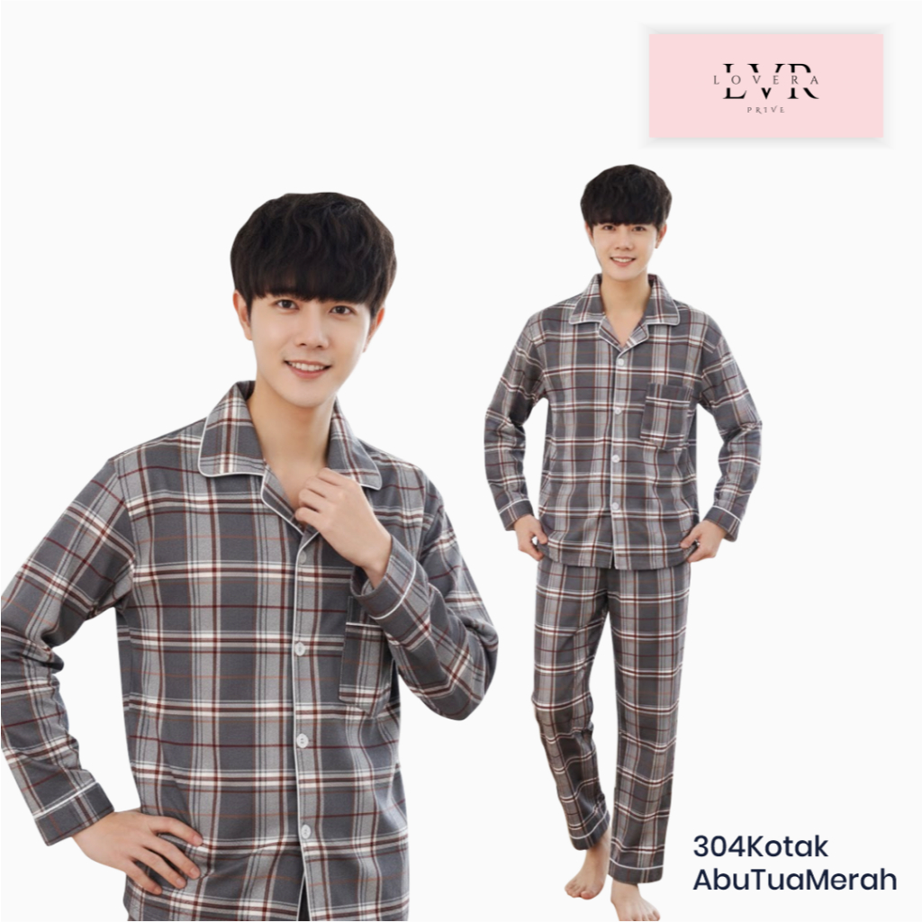 Lovera Baju Tidur Piyama Cowok Motif Kotak Kotak Model Kemeja PP Lengan Panjang Celana Panjang