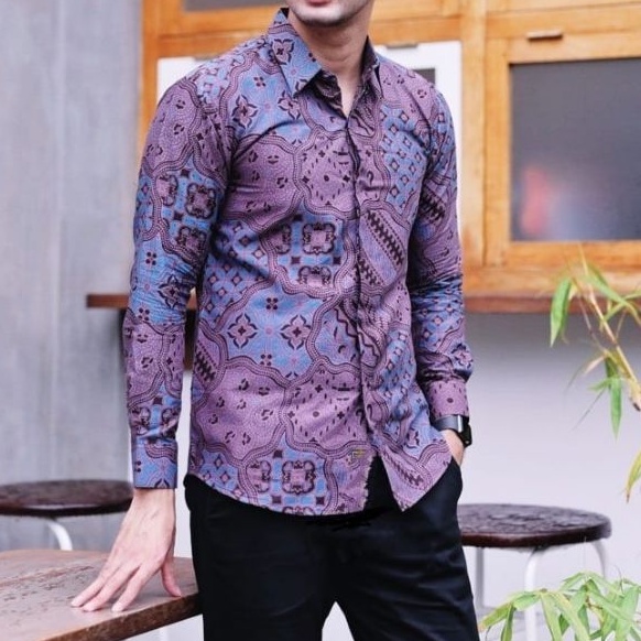 Baju batik pria warna lilac terbaru / Kemeja Batik Lengan Panjang Bahan Katun Premium Reguler Fit Ungu