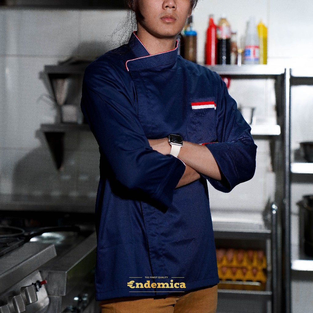 Baju chef/Seragam chef/baju koki pria atau wanita lengan panjang varian warna plus bordir logo