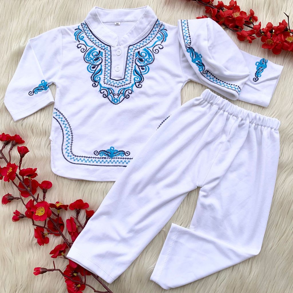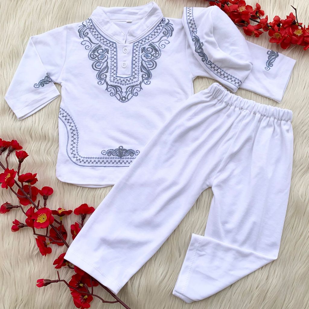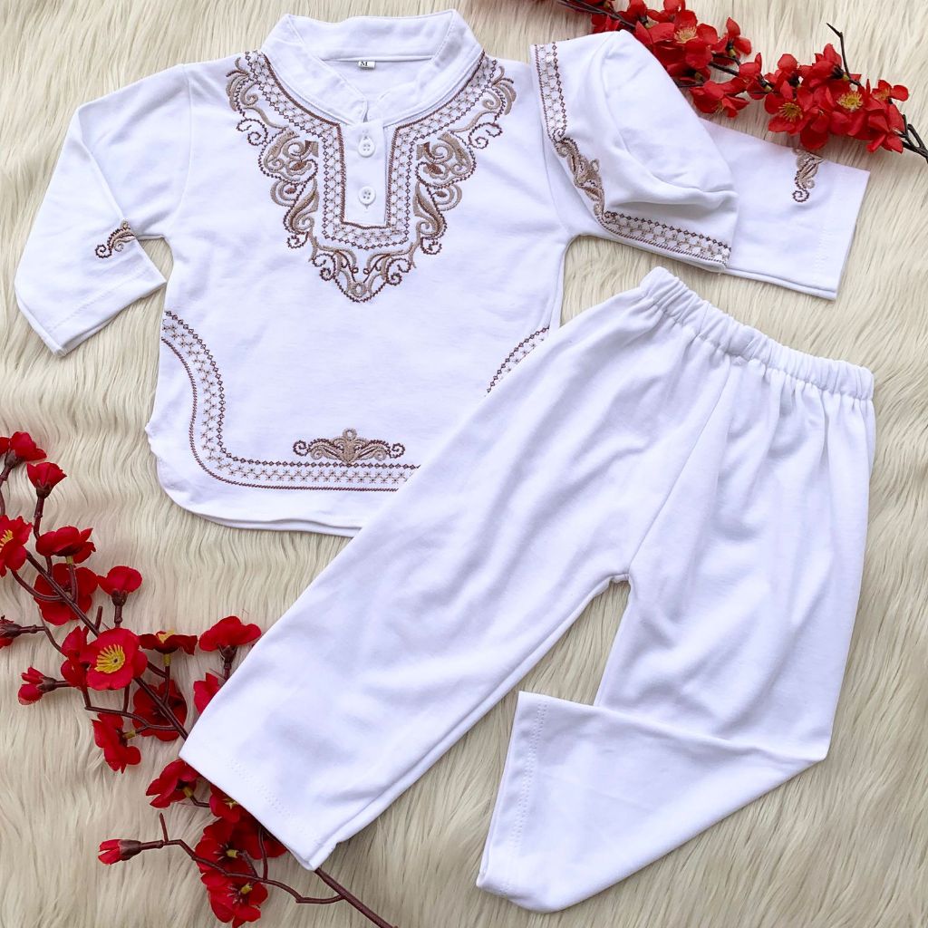Baju koko 6-18 bulan motif bagus besteller putih lebaran idul fitri anak bayi cowok laki murah -kok