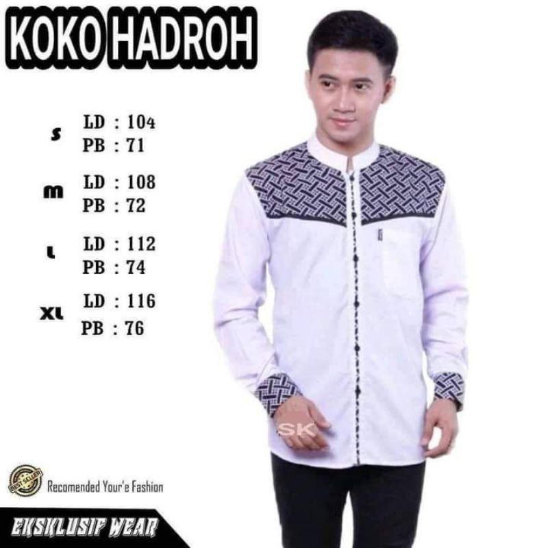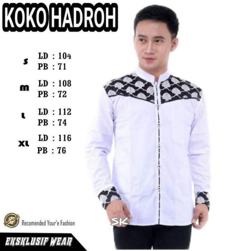 Baju koko azzahir terbaru/ koko putih lis hitam/ koko seragam hadroh/ koko santri grup marawis
