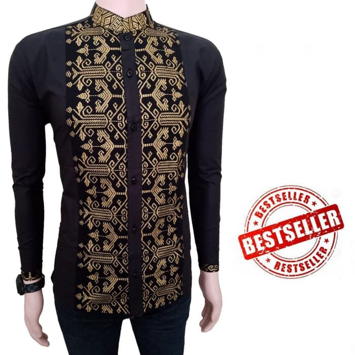 Baju koko batik kombinasi golden clasic prada lengan panjang hitam
