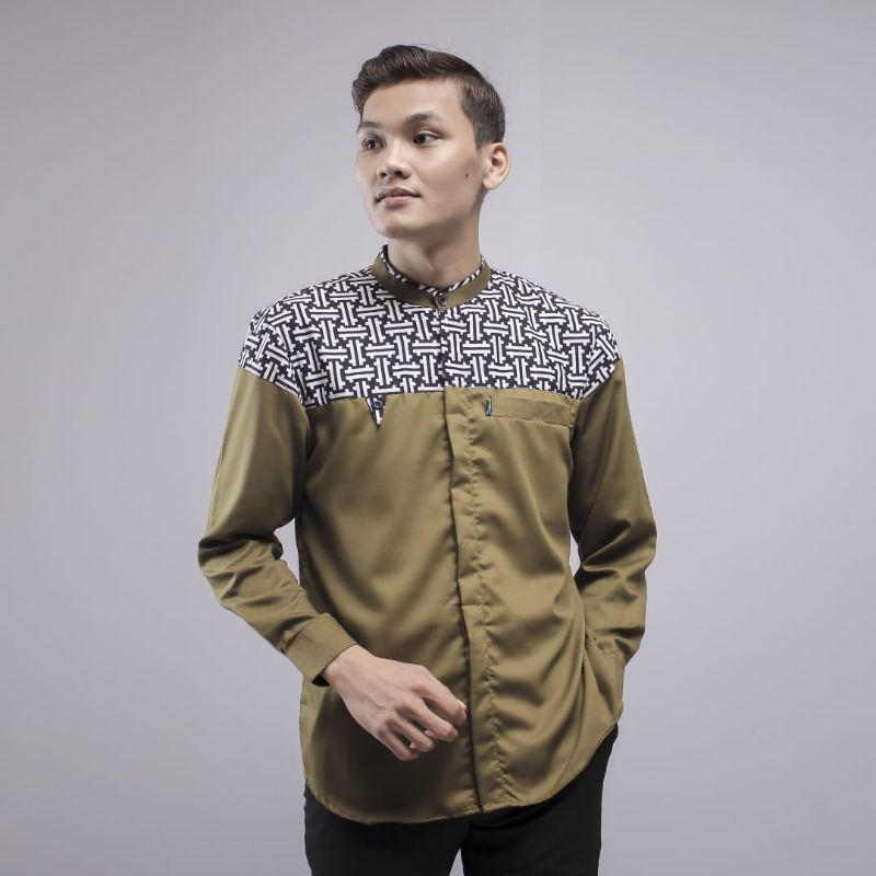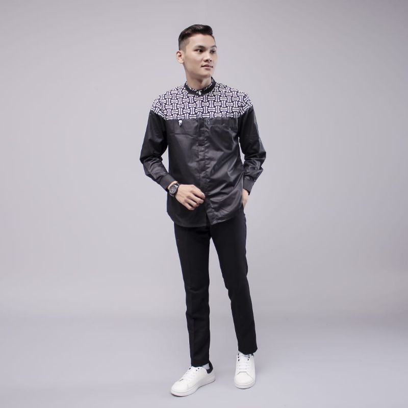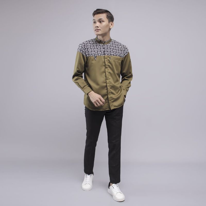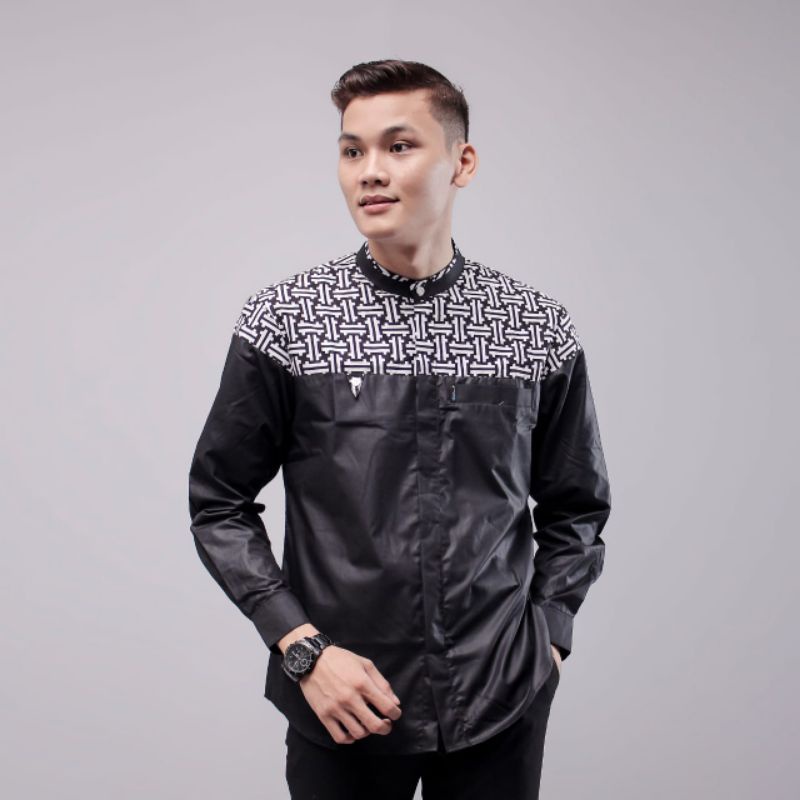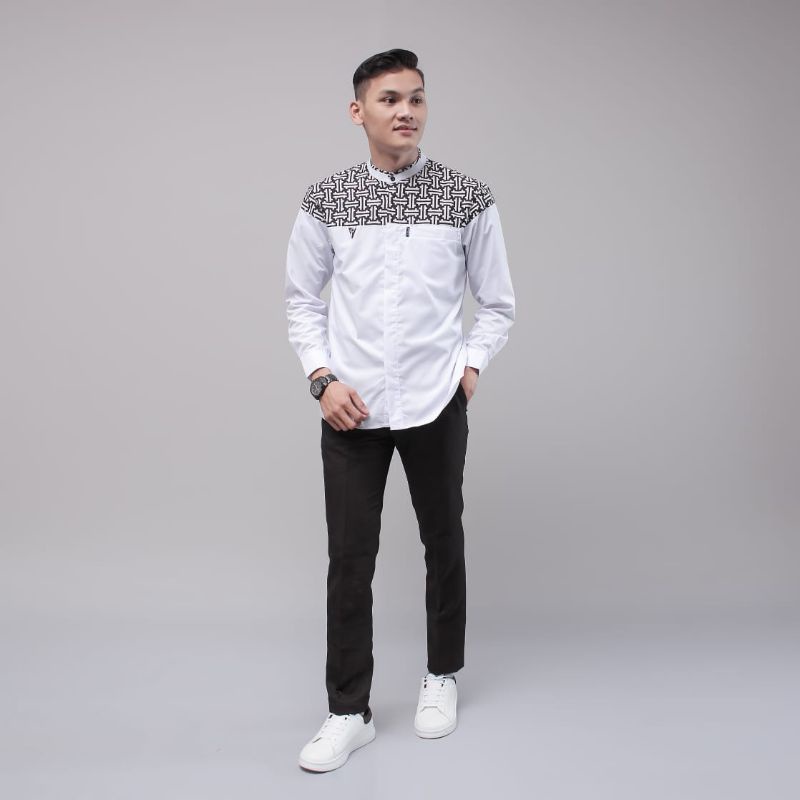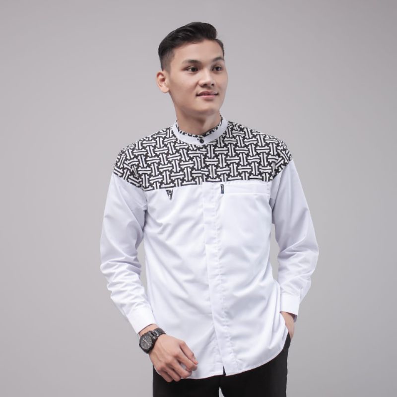 Baju koko lengan panjang kombinasi batik warna putih motif falcon bahan cotton premium new series