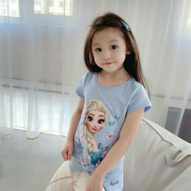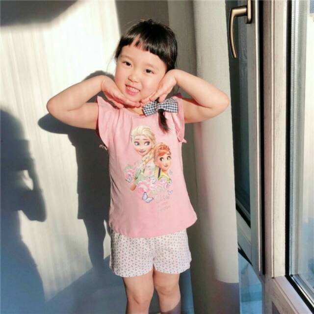 Baju rumah pendek anak perempuan motif frozen ( SET206 / SET207 )