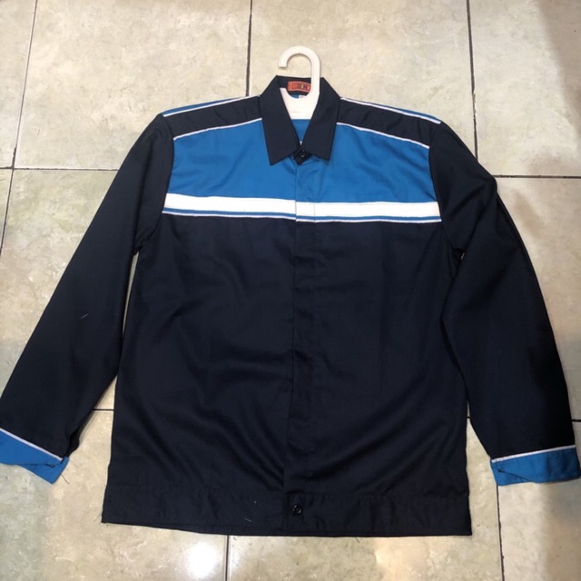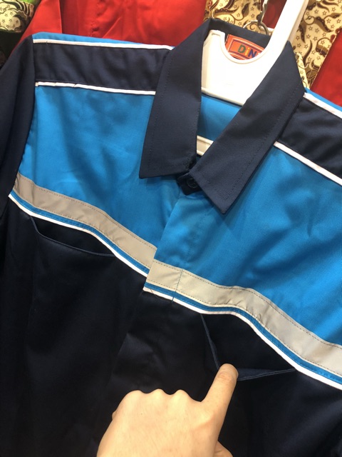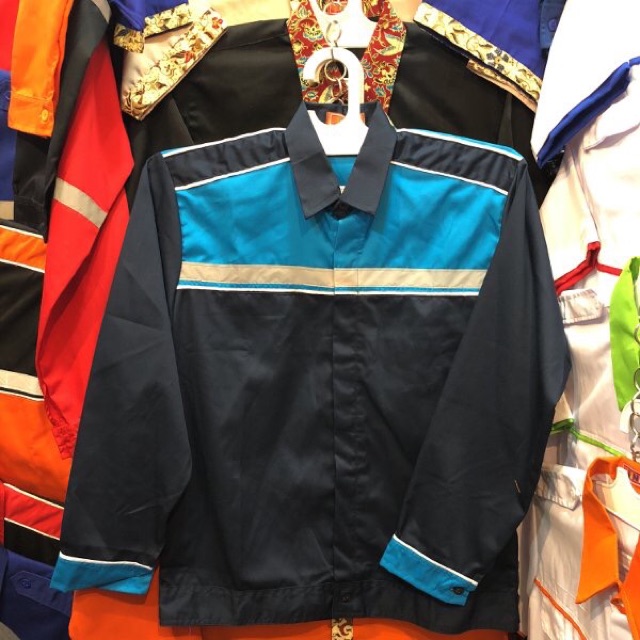 Baju safety biru dongker kombinasi biru tosca - Seragam proyek ( bisa tambah bordir )
