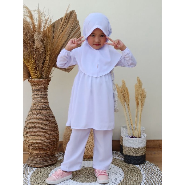 Baju setelan anak putih polos seragam paud TK baju manasik Baju putih anak atas bawah