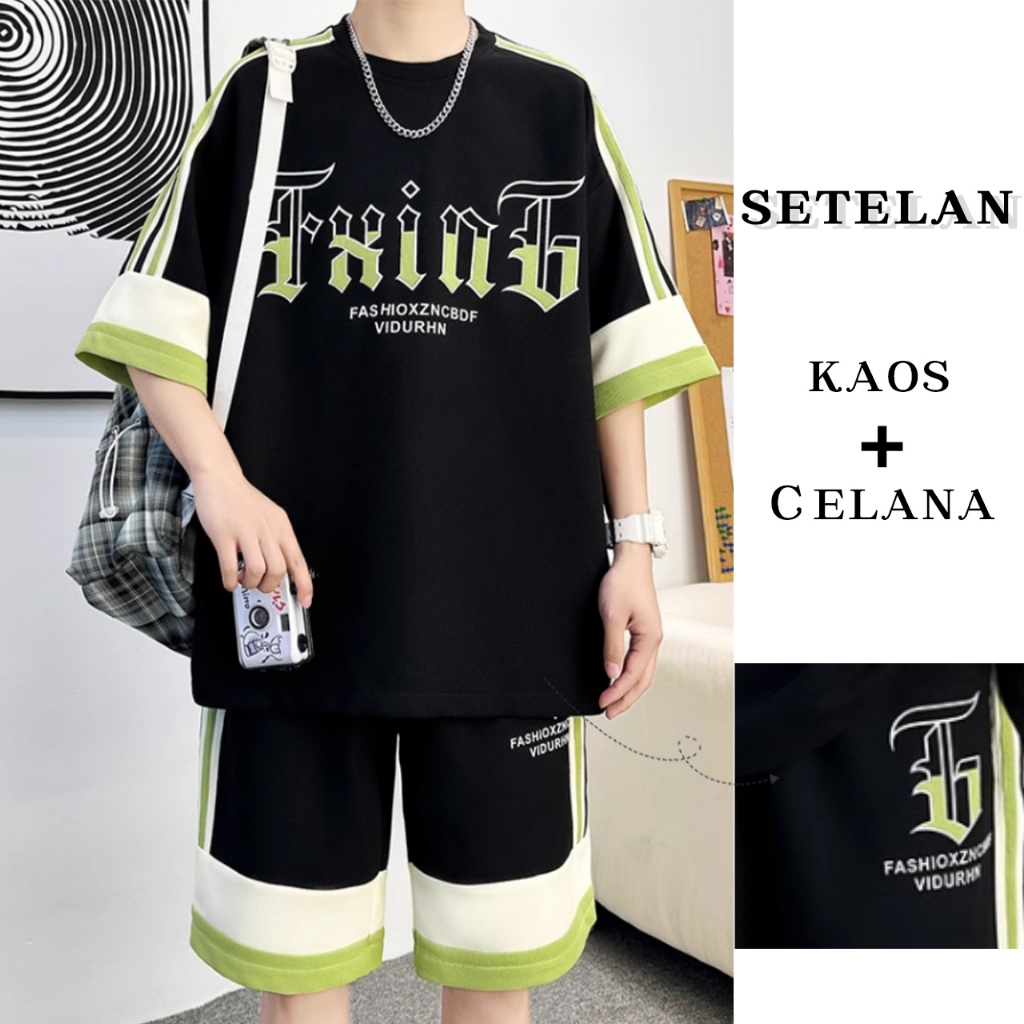 Baju setelan pria korean style one set cowok kekinian baju cowok oversize pria baju cowok distro original teba 45-85kg