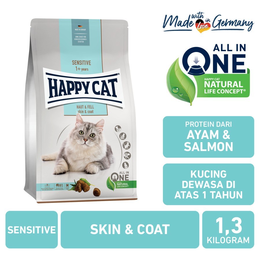 Happy Cat Food Pouch Sensitive Skin & Coat 1.3kg Makanan Kucing Dewasa