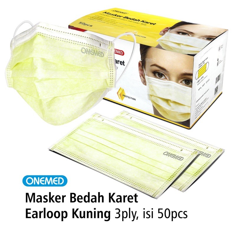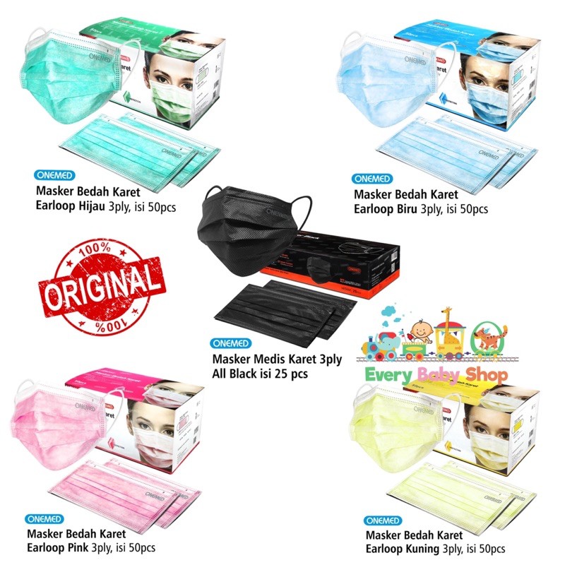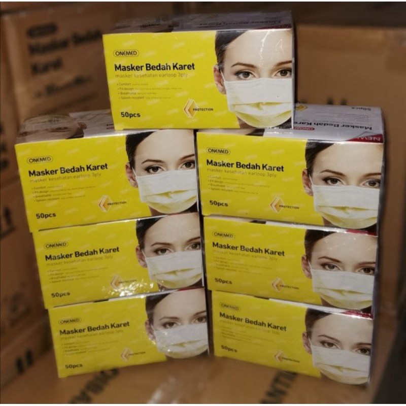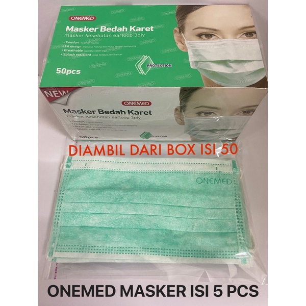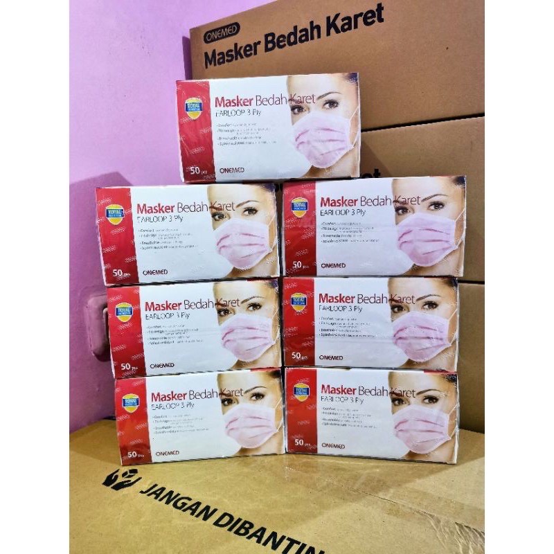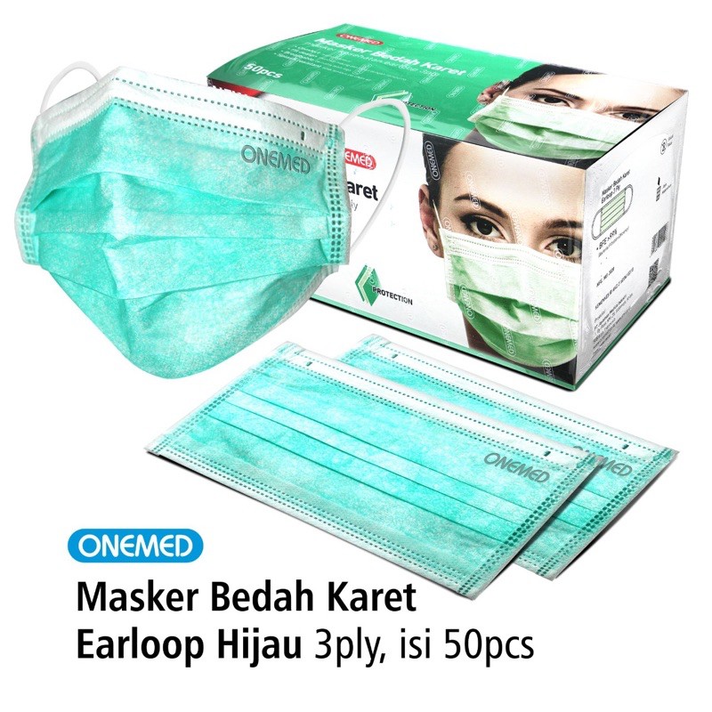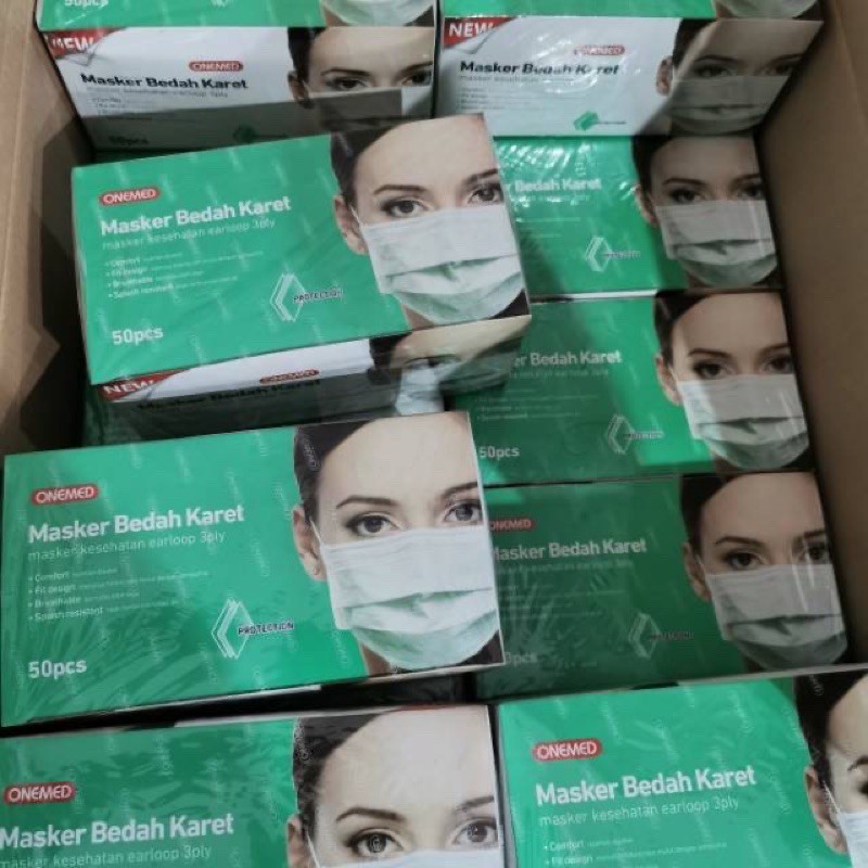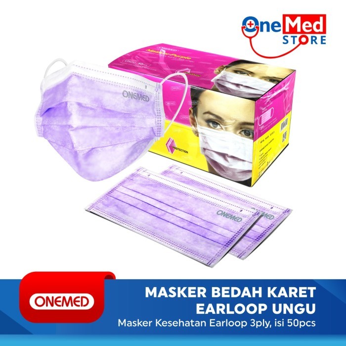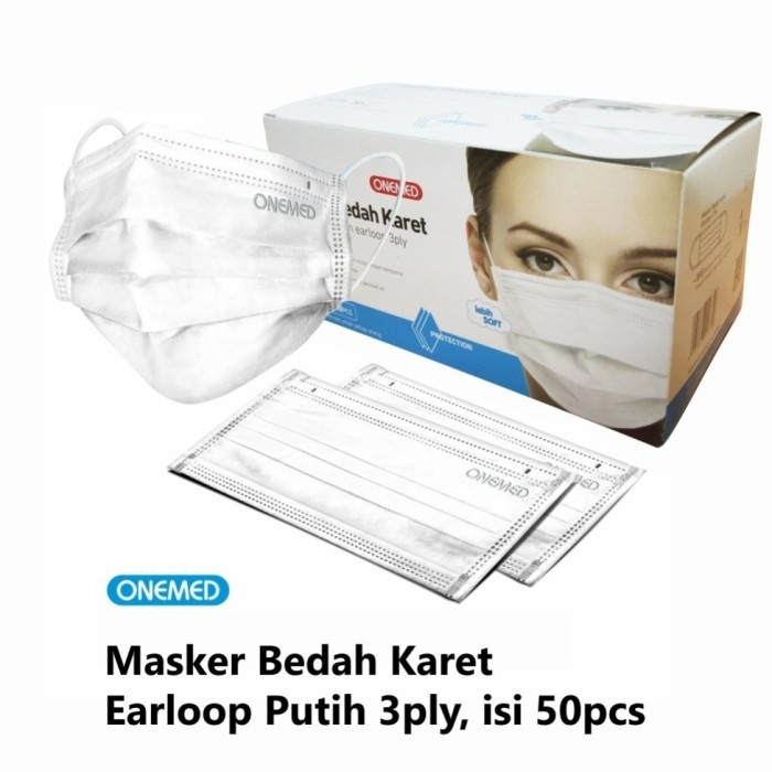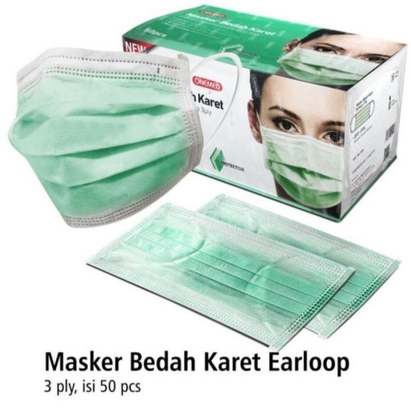 ONEMED MASKER MEDIS 3 Lapis 1 Box isi 50 / 25 pcs SURGICAL MASK EARLOOP 3Ply Masker Bedah Karet
