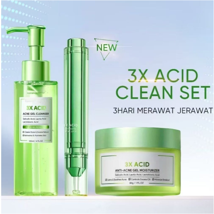 3X Acid Acne Gel Moisturizer 30gr & Acne Cleanser / Intensive Acne Spot Gel 11g