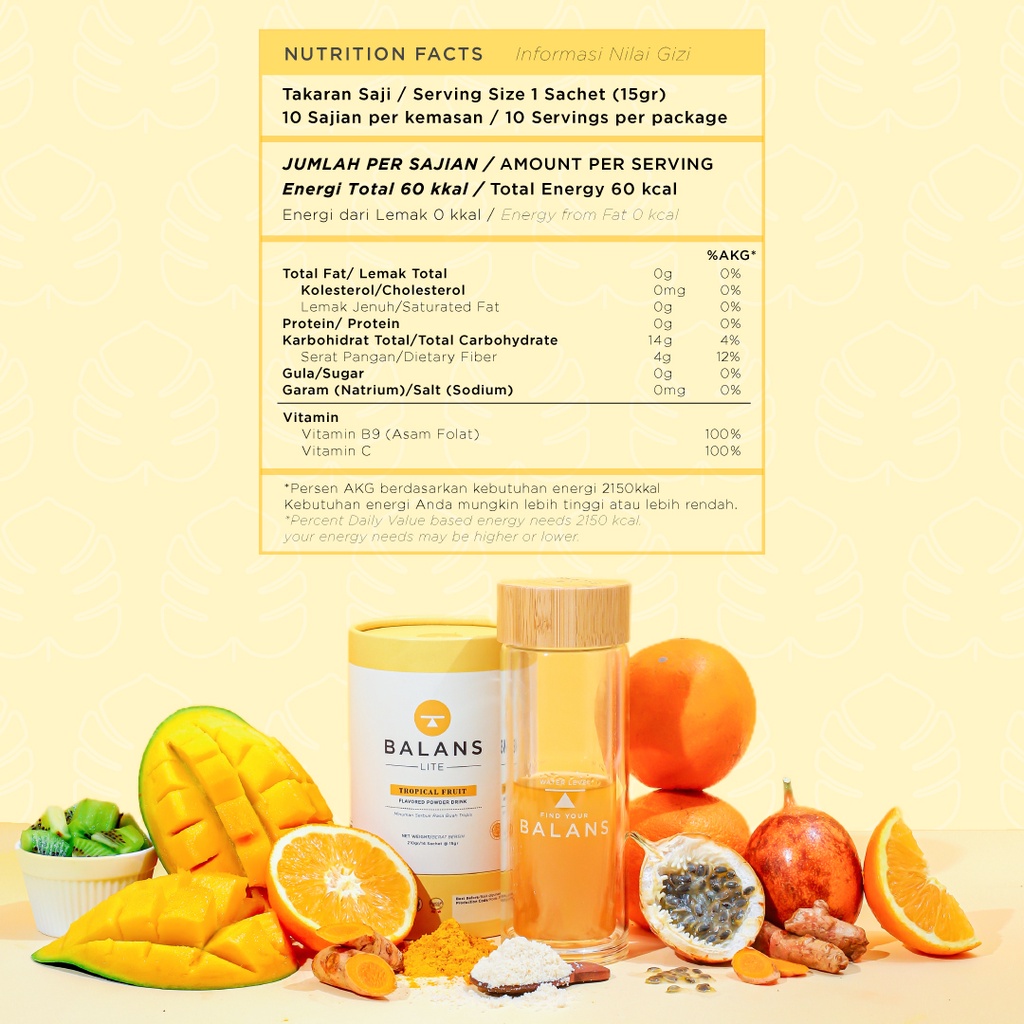 Balans Lite | Tropical Fruit | Fiber & Probiotics Drink - Isi 14 Sachet