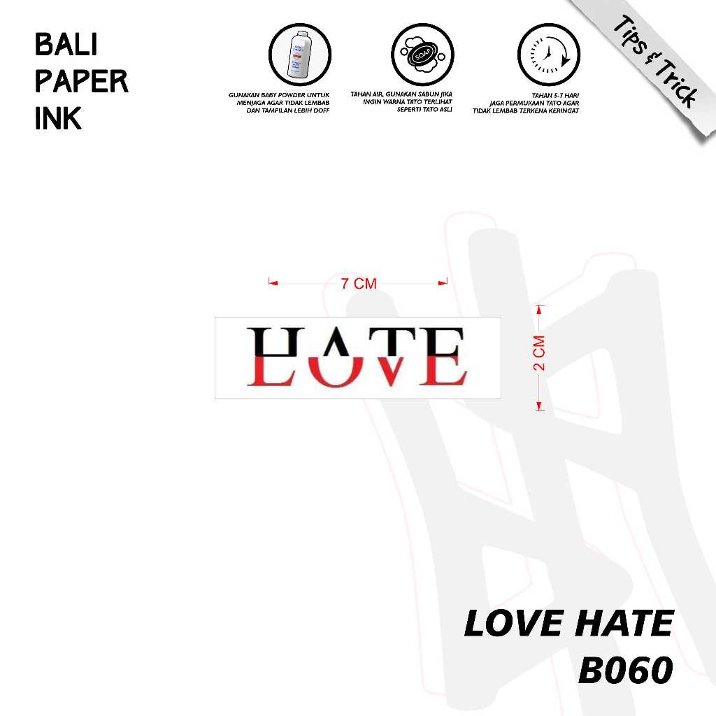 Bali Paper Ink B060 Love Hate Tatto Temporary Basic Tato Temporer
