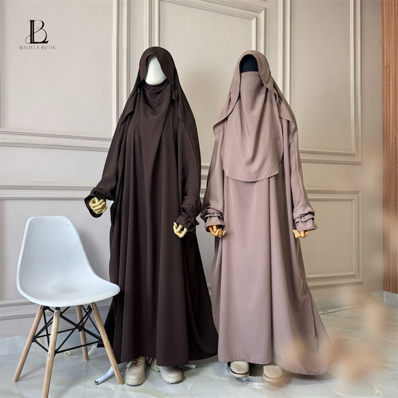 Balila Butik French Khimar Overhead Anisa Poni Syafar Busui Handshok Double Karet Cincin Hijab Muslimah Simpel Syari Kain Forzaleta