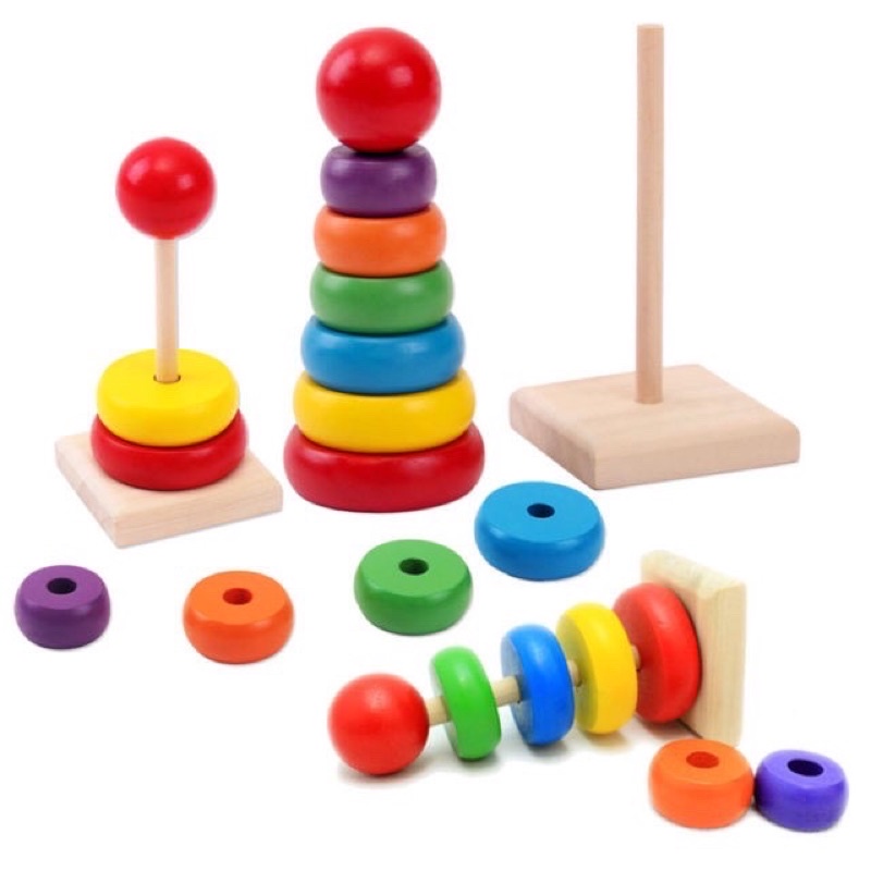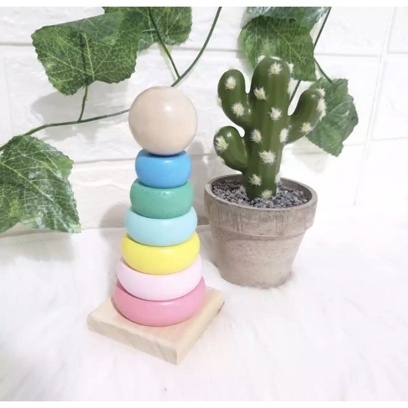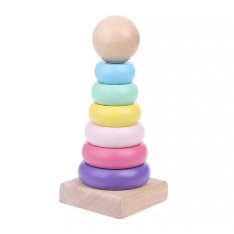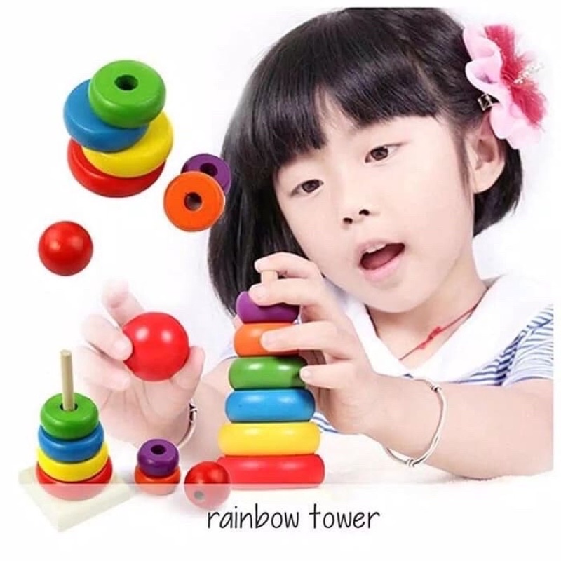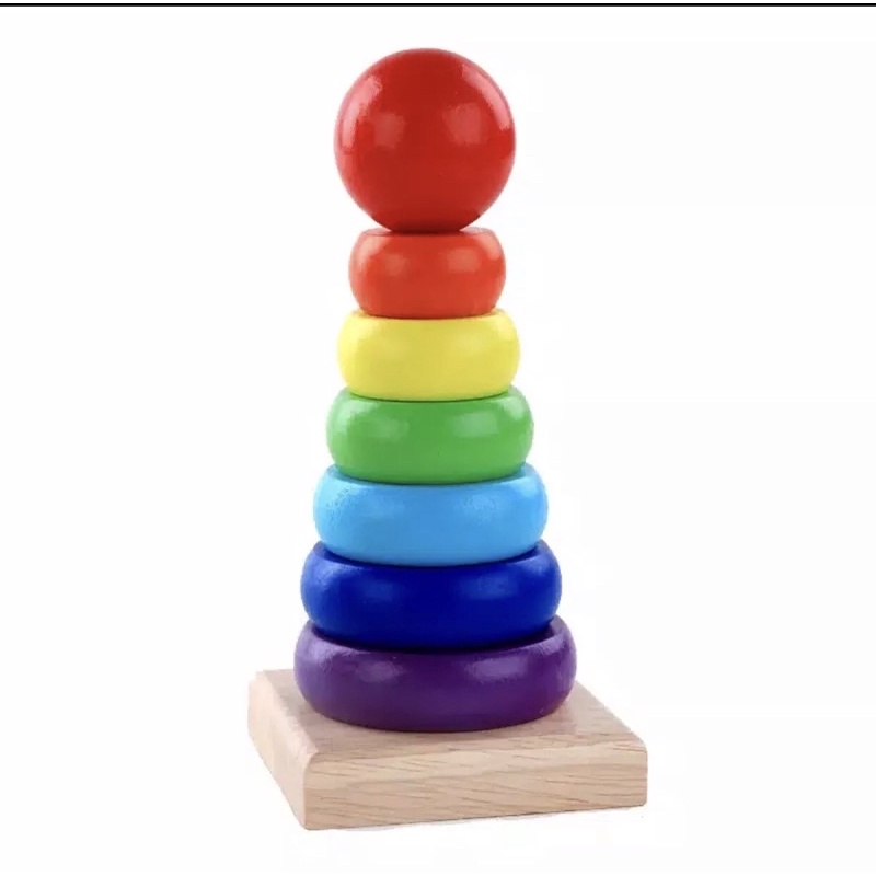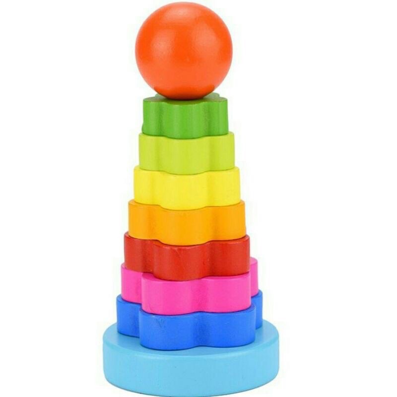 Balok Susun Anak Rainbow Tower Toys Balok Susun Mainan Kayu Mainan Balita Mainan Balok Kayu Wooden Toys Donat Susun Pelangi 206-25