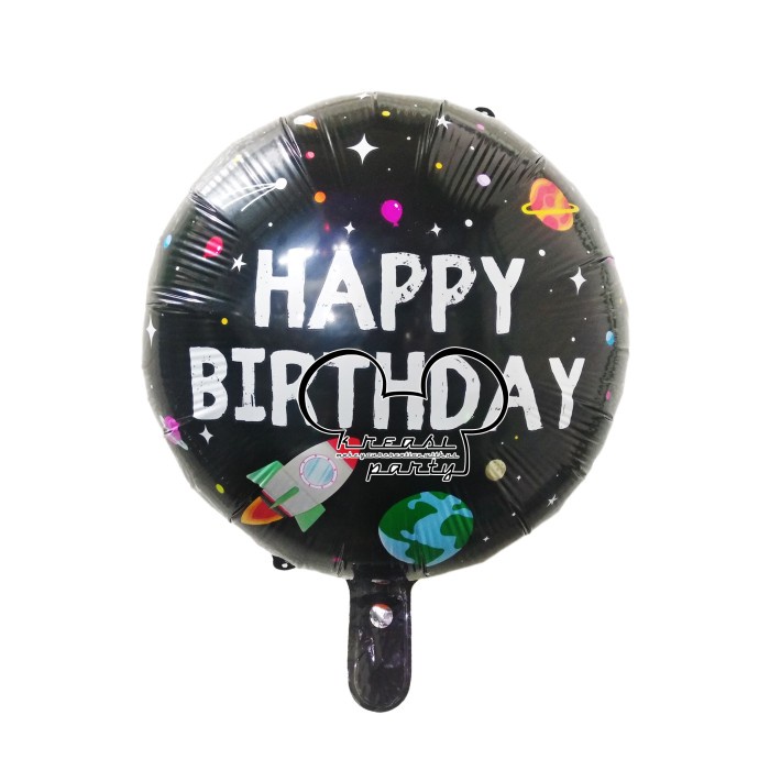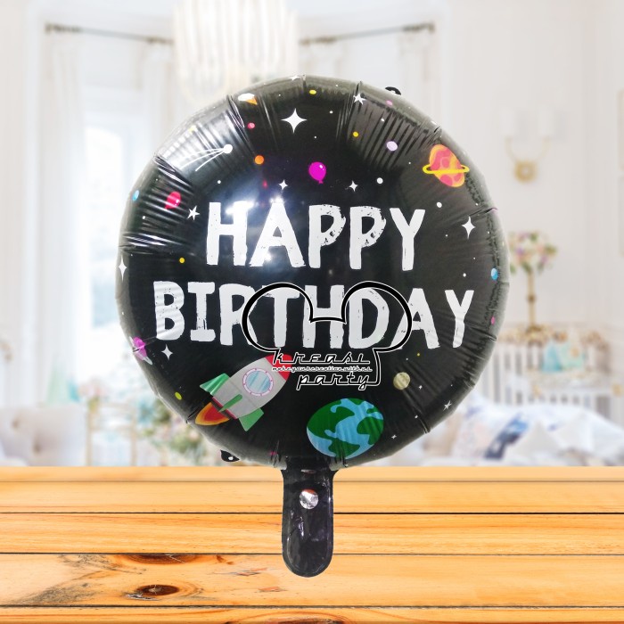 Balon Bulat HBD Space Luar Angkasa / Balon Foil HBD / Balon Motif HBD