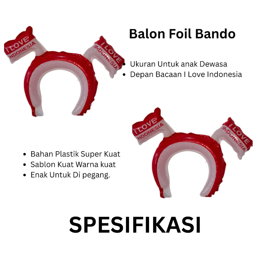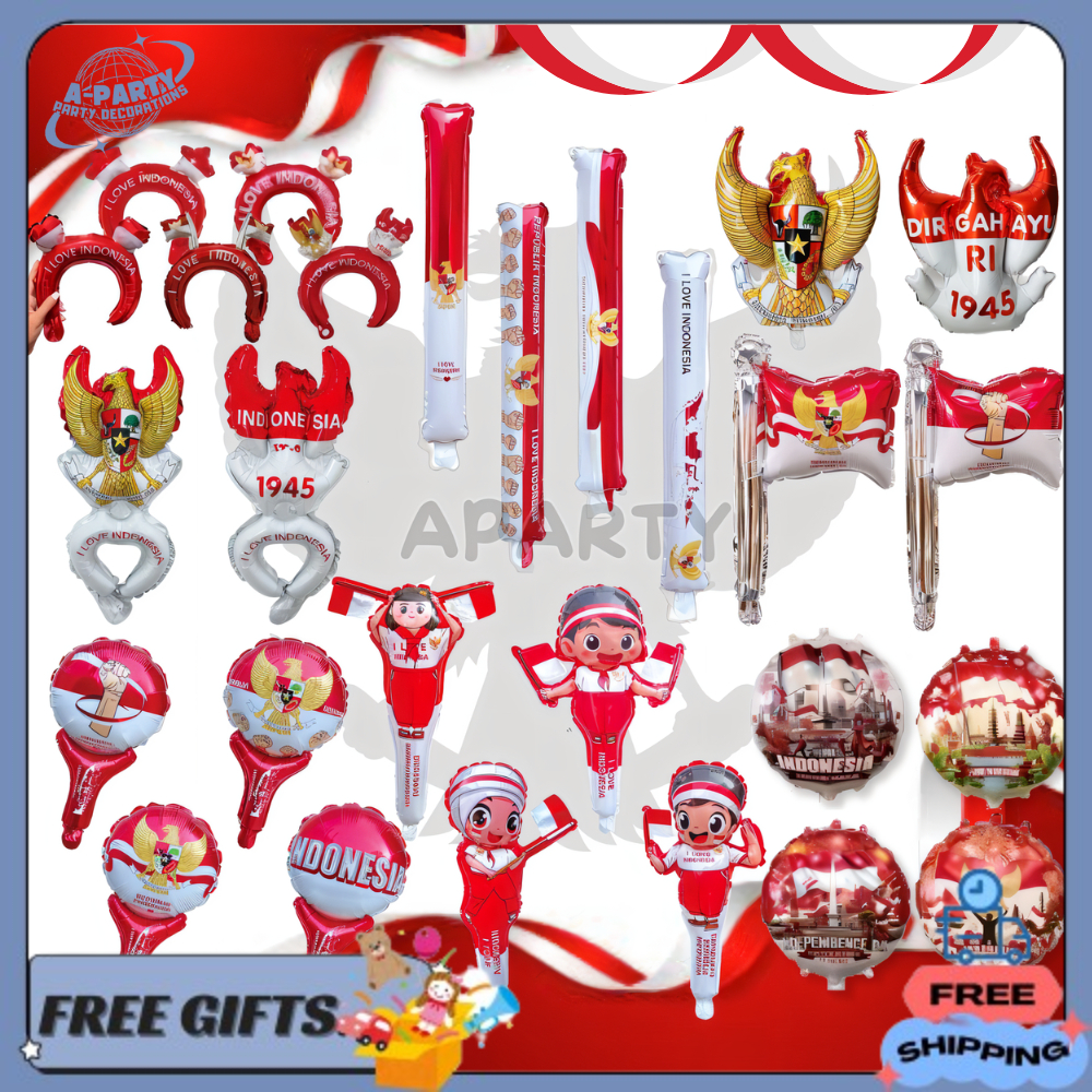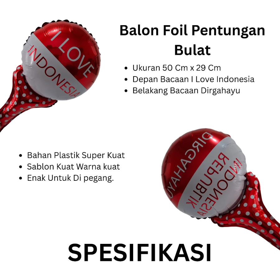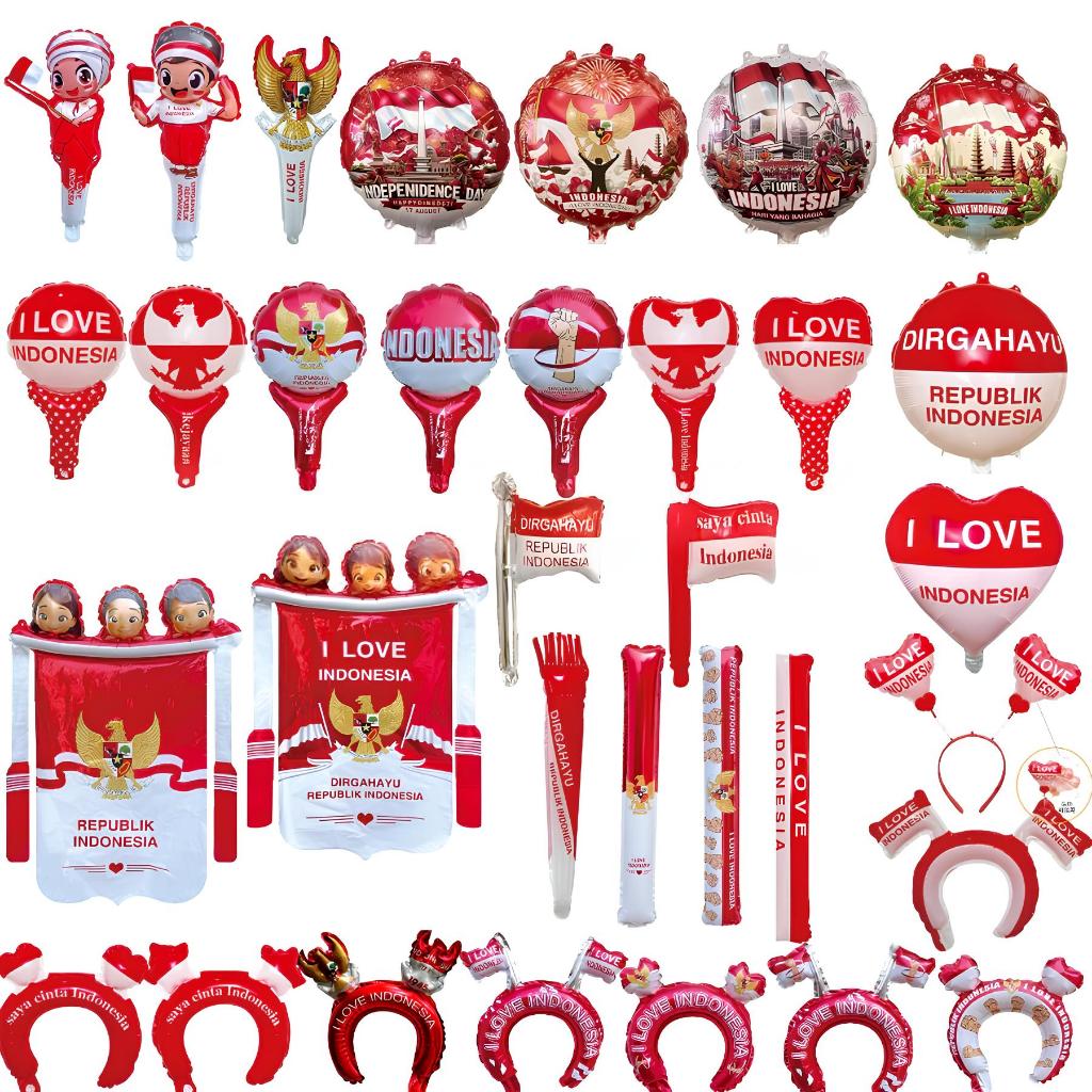 Balon Foil Agustusan Bando Pentungan Love Bulat Stick Panjang I love Indonesia HUT RI Dirgahayu Kemerdekaan 17 Agustus