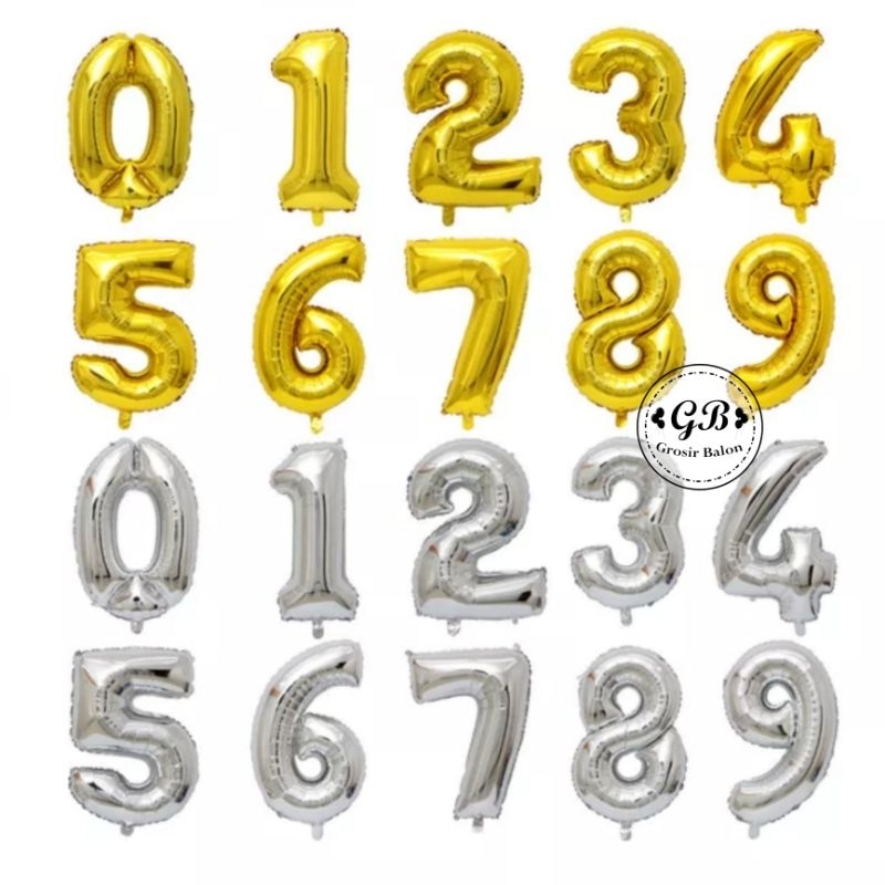 Balon Foil Angka / Balon Foil Angka Size 40 cm Warna Silver /Balon Angka / Balon Warna Silver / Balon Warna Gold