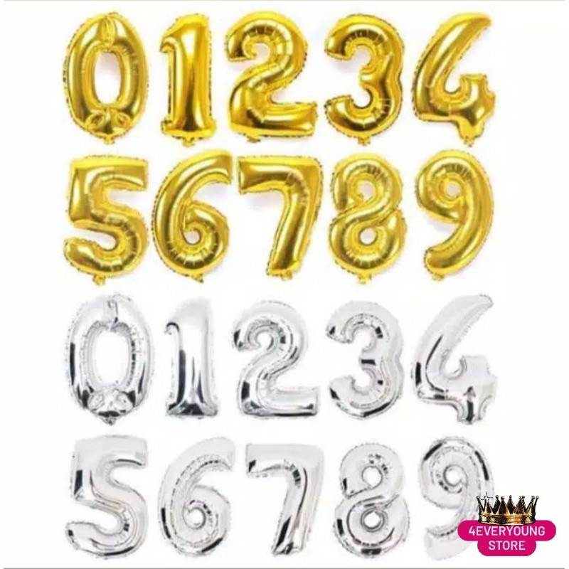 Balon Foil Angka Gold Silver Rose Gold 80 Cm / Balon Angka Jumbo 80Cm
