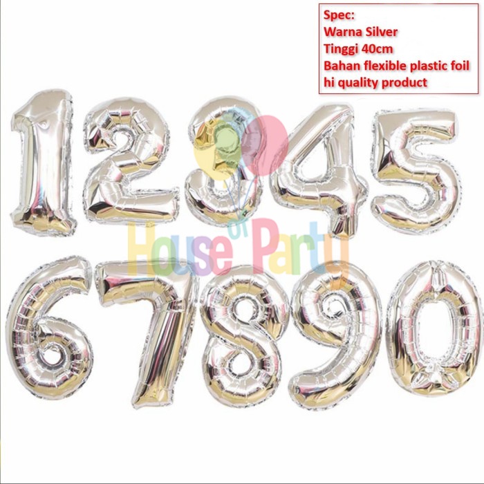 Balon Foil Angka SILVER / SILVER 40cm / Balon foil / Balon Angka 1 PCS