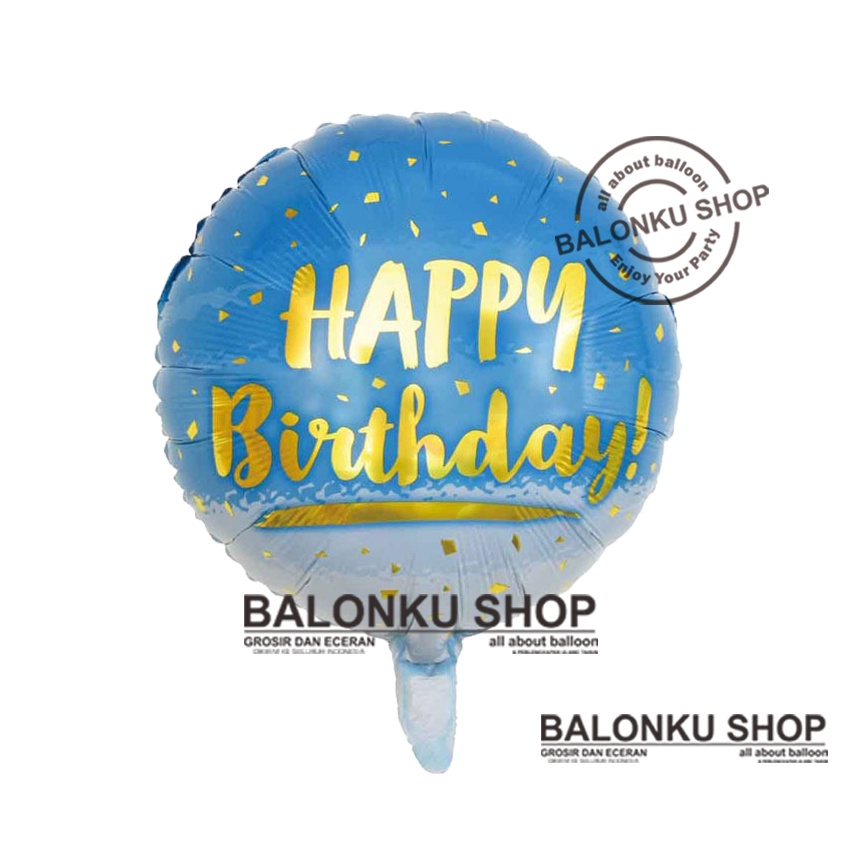 Balon Foil Happy Birthday Bulat / Balon Happy Birthday Biru Confetti