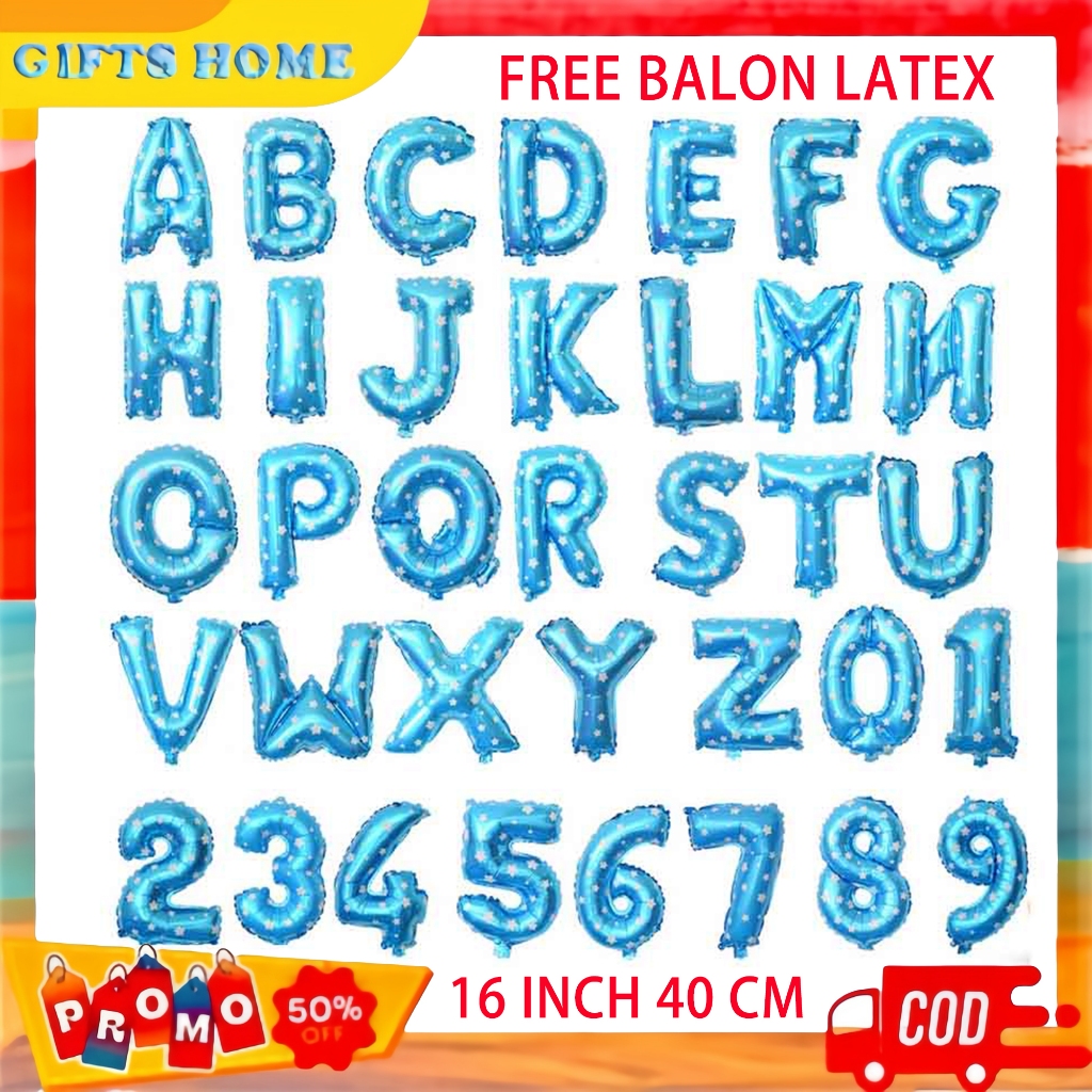 Balon Foil Huruf Abjad Alphabet Biru 16 Inch 40cm A-Z Balon Foil Angka Biru 0-9 (1 pcs)