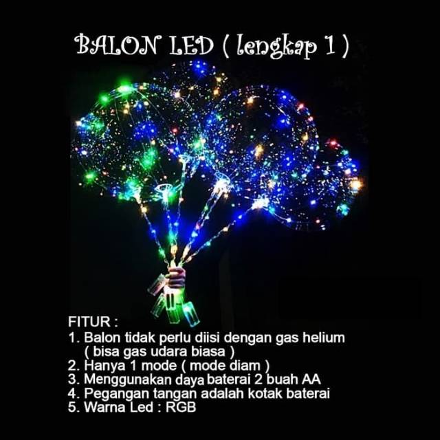 Balon LED RGB LENGKAP 1/BOBO LED/Balon Lampu Tumblr 1 MODE + Gagang TANPA BALON
