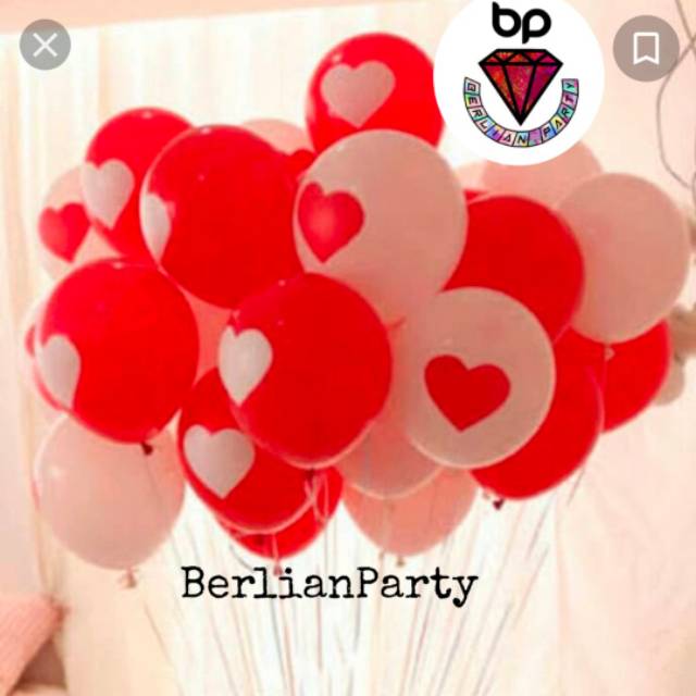Balon Latex Doff Love / Balon Motif Love Merah Putih ( isi 10 pcs )