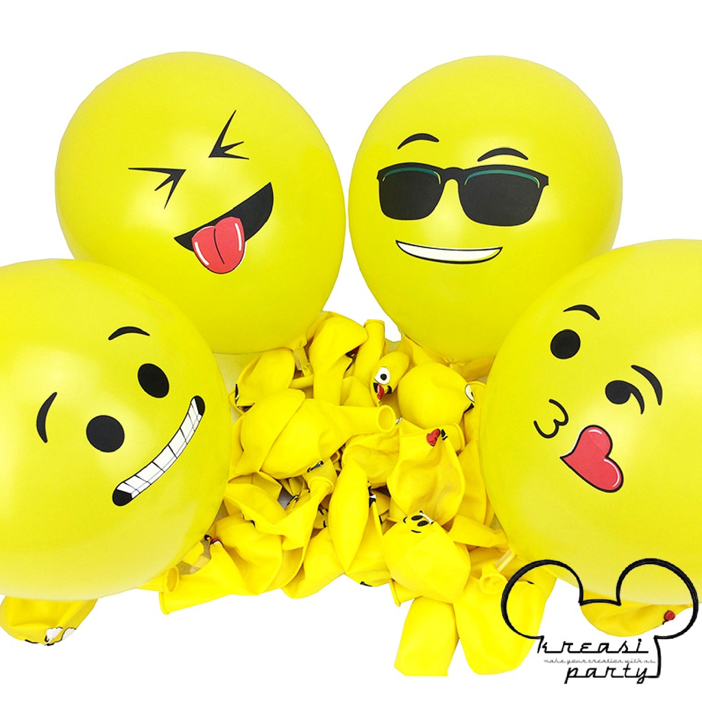 Balon Latex Emoticon 1 Pack isi 100 pcs / Balon Emoji / Balon Emoticon / Balon Ekspresi