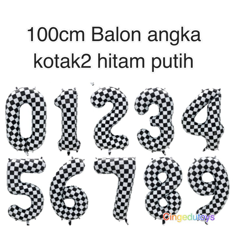 Balon angka Jumbo Racing Hitam putih kotak -kotak 100 cm