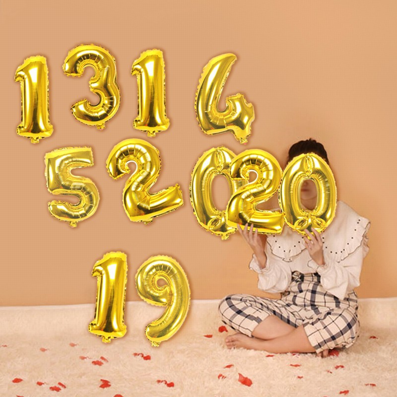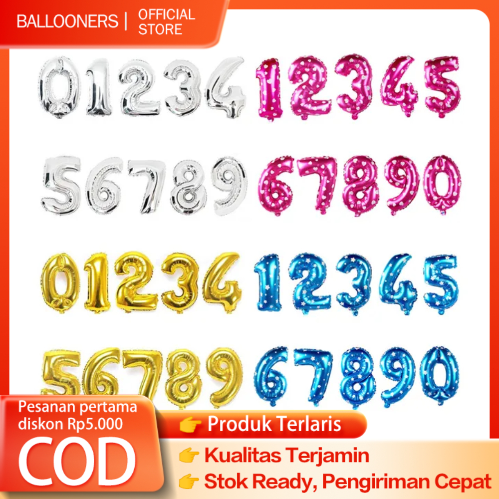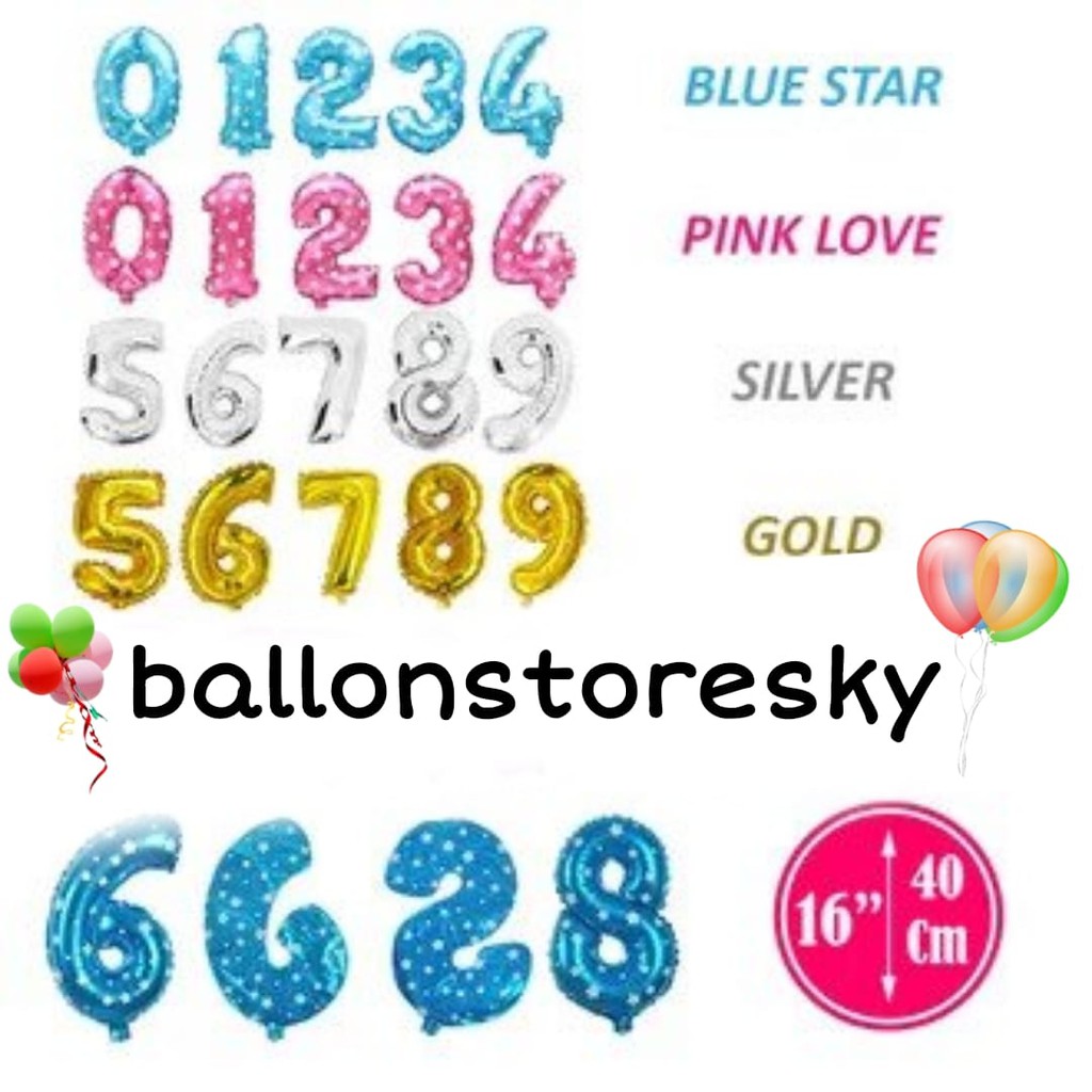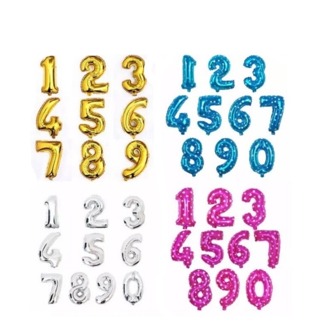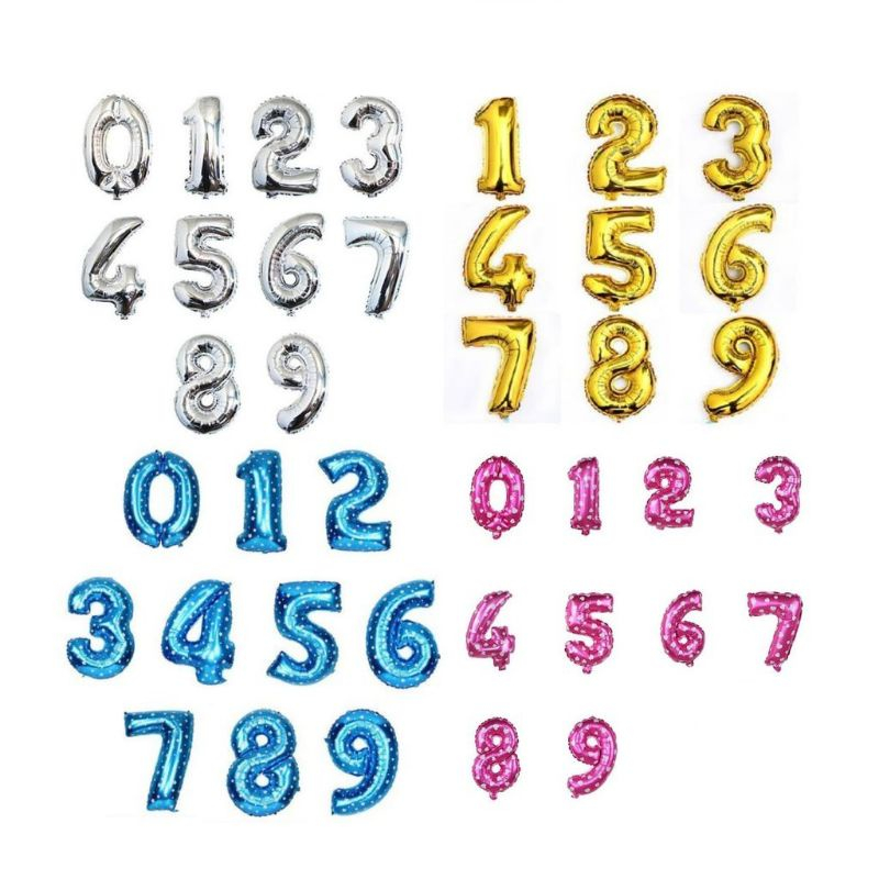 Balon foil Angka 40cm silver biru pink gold balon Angka 16 inch (1PCS)