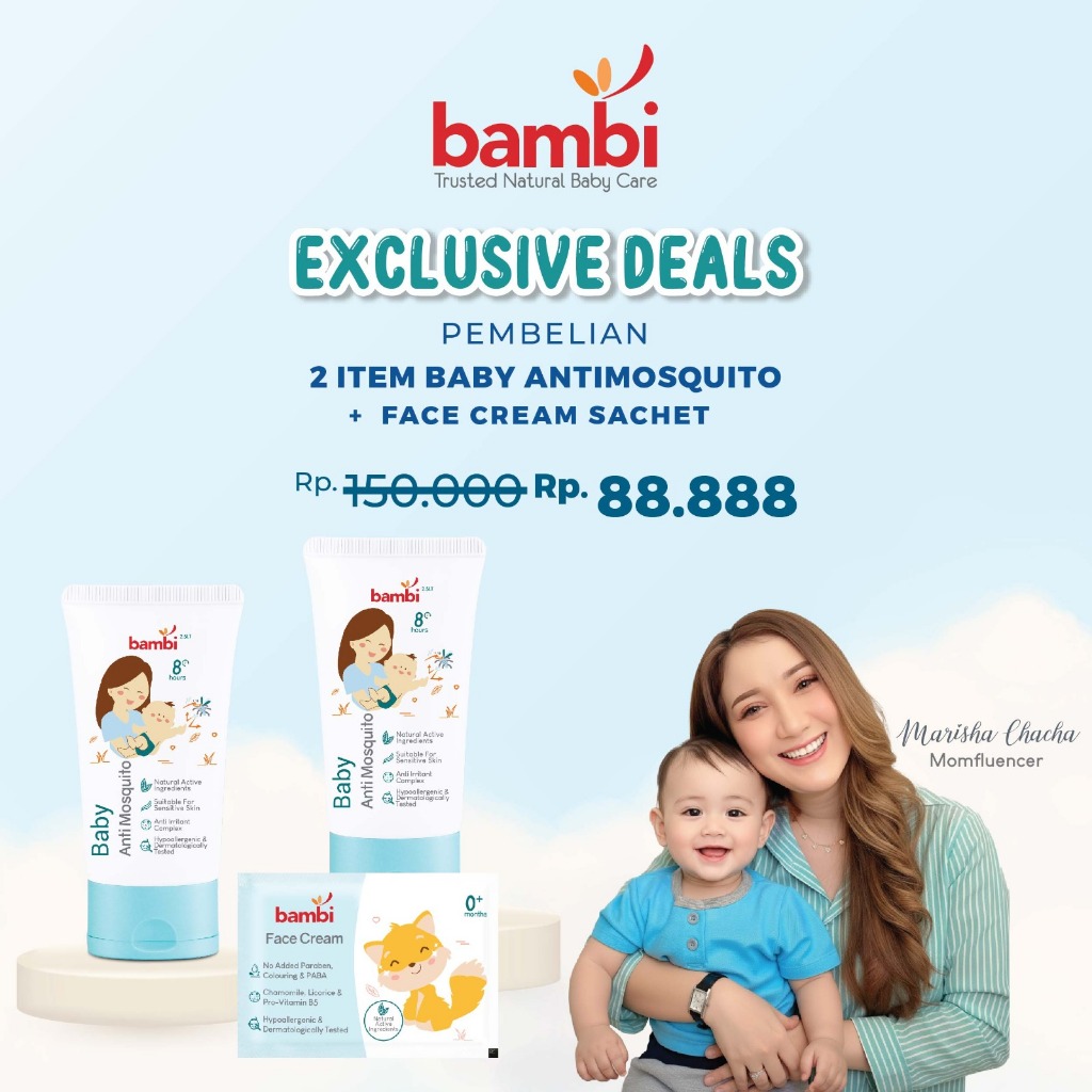 Bambi Baby Anti Mosquito Lotion with Citronella Oil & Anti Irritant Complex 50ml | Lotion Anti Nyamuk Bayi Kulit Normal - Sensitif