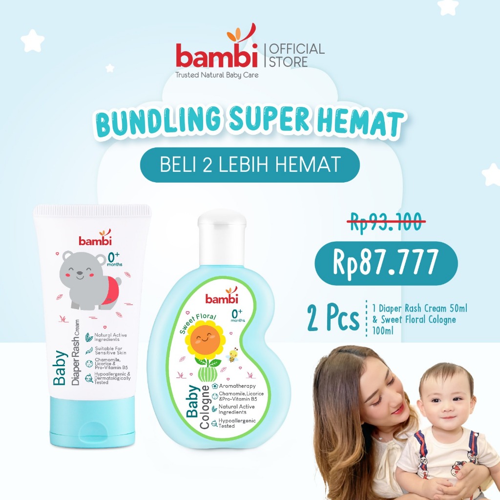 Bambi Baby Diaper Rash Cream 50ml | Krim Ruam Popok Pada Bayi Kulit Normal - Sensitif | Krim Area Lipatan | Mencegah Iritasi Ringan Pada Kulit Bayi