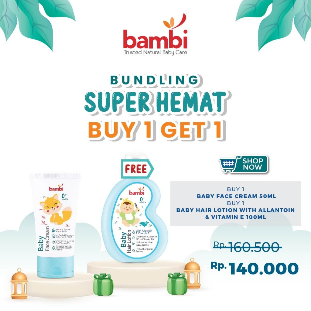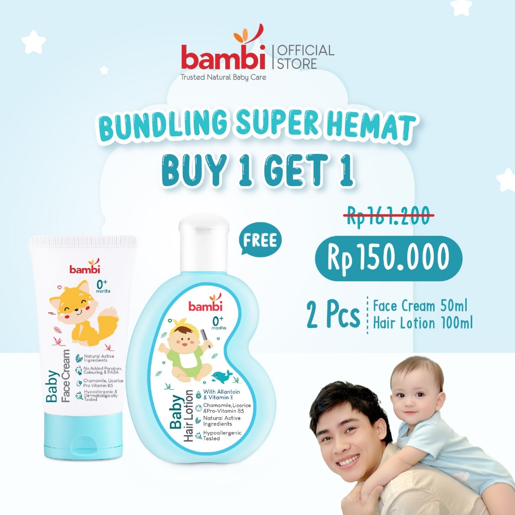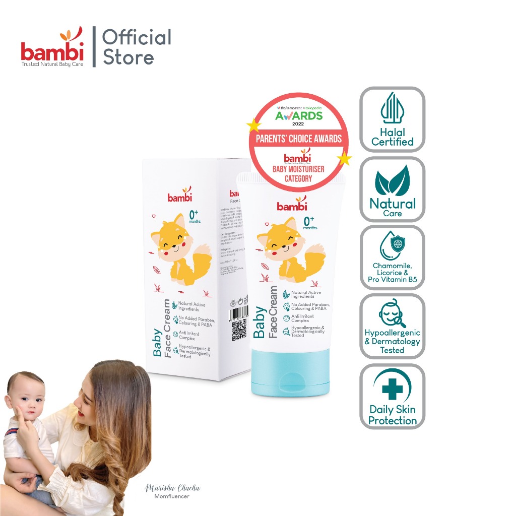 Bambi Baby Face Cream 50ml | Krim Wajah Bayi Kulit Normal - Sensitif | Lotion Pelembab Perawatan Wajah Bayi