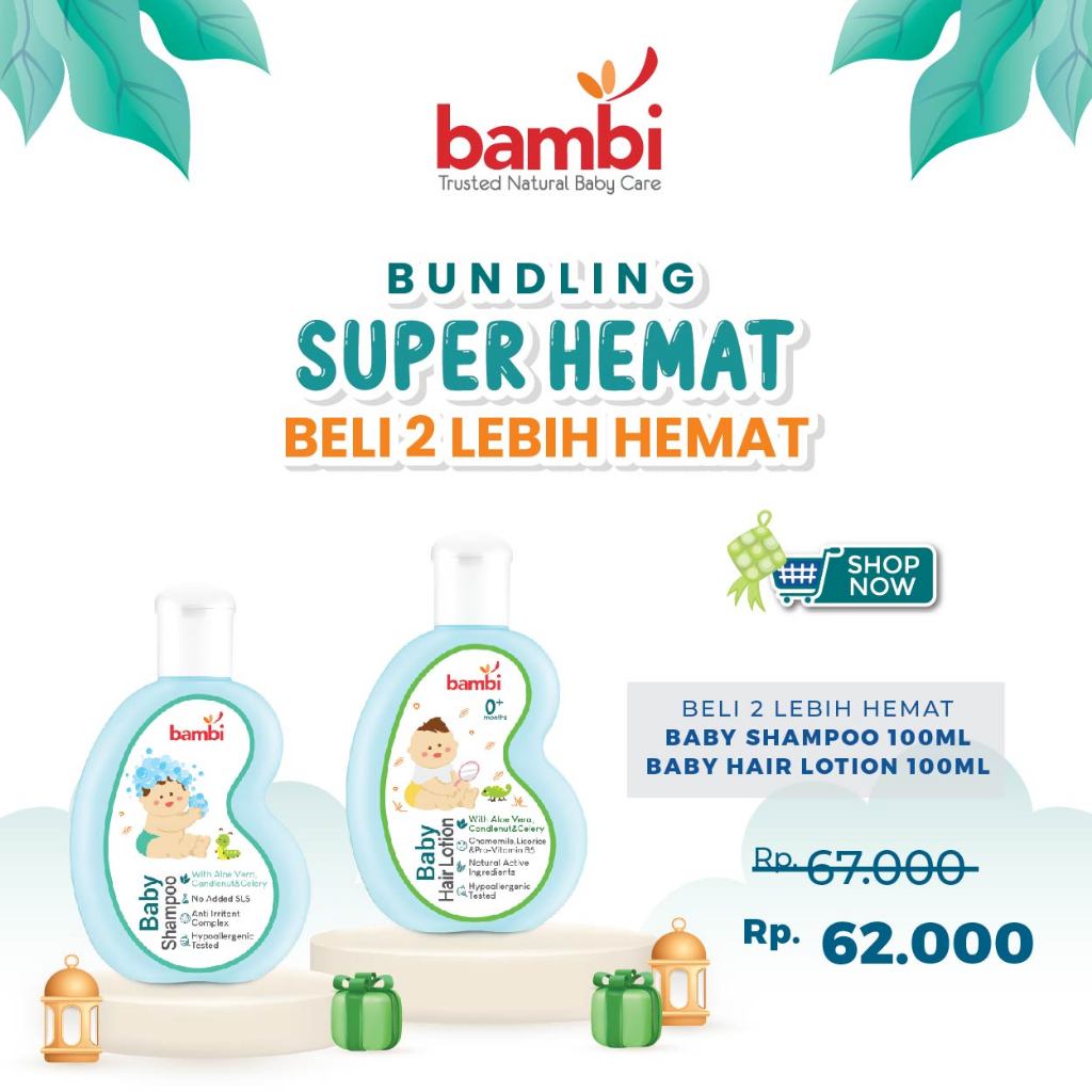 Bambi Baby Shampoo Aloe Vera, Candlenut & Celery 100ml | Shampoo Kandungan Lidah Buaya, Kemiri, Seledri untuk Menebalkan Rambut Bayi