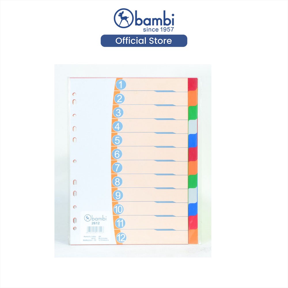 Bambi Isi Binder A4 Divider & Indexes Pembatas Kertas Binder Edisi 12 Section Original