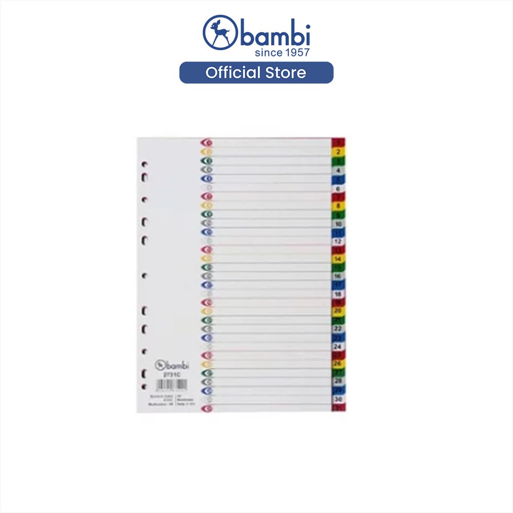 Bambi Isi Binder A4 Divider & Indexes Pembatas Kertas Binder Edisi Numeric Index 1-31 (Daily) with Multiholes Colour Rigid PVC Original